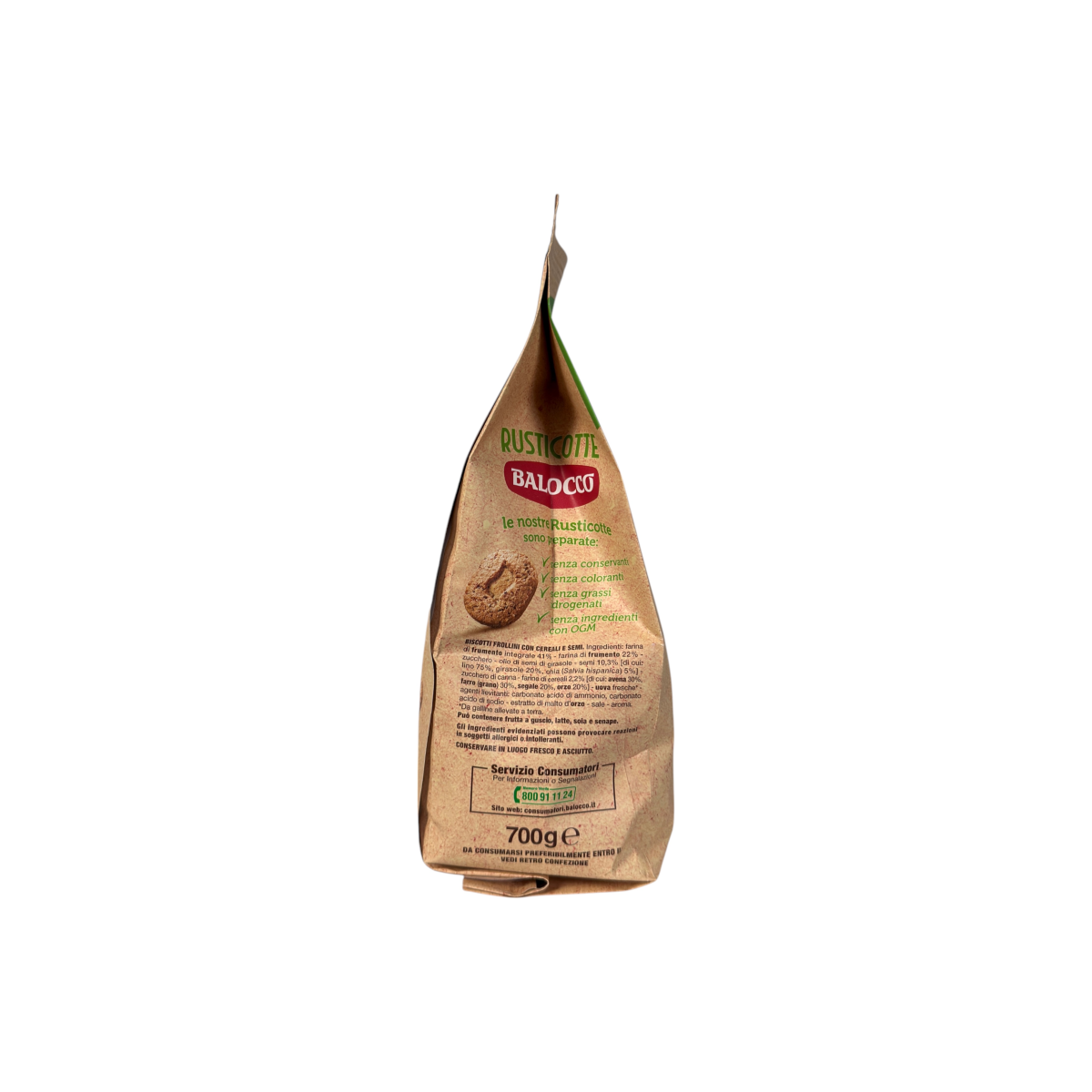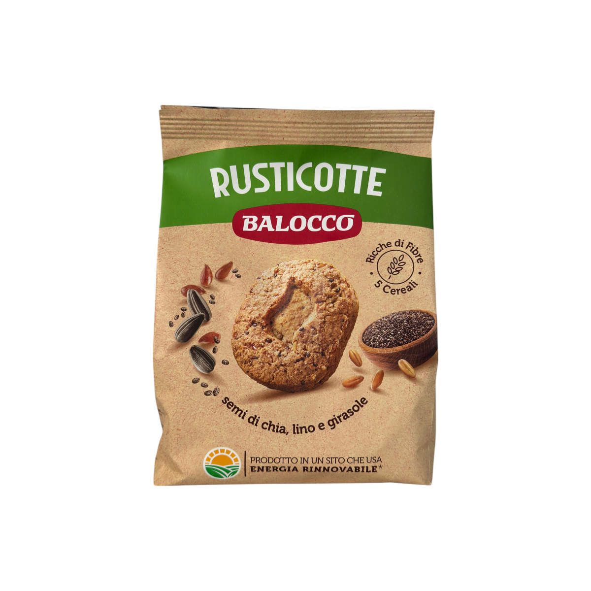 Натуральне італійське печиво Balocco Rusticotte створене для тих, хто обирає користь і смак в одному. Виготовлене з борошна п’яти злаків та суміші насіння чіа, льону й соняшнику, це печиво багате на клітковину, поживне й ароматне.
