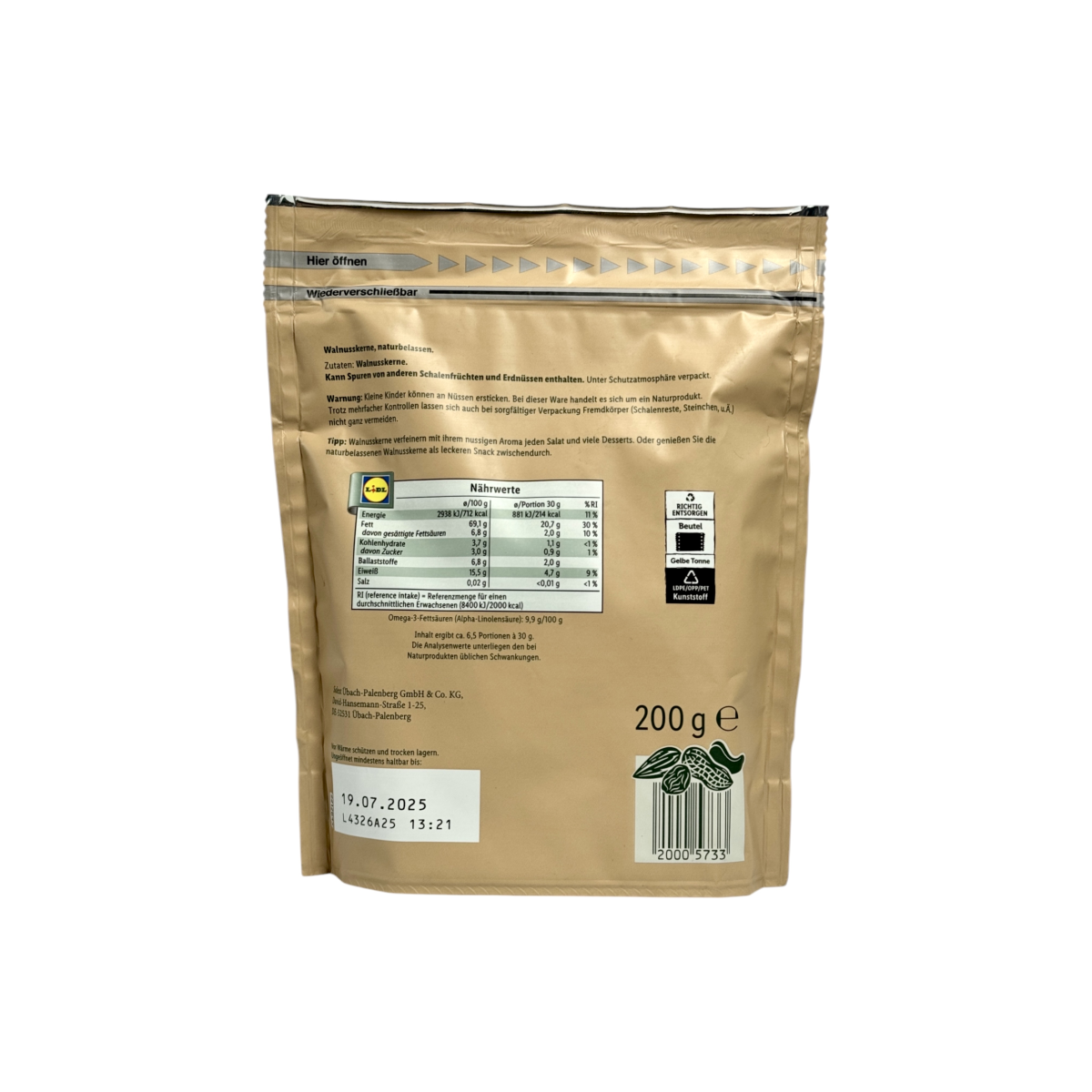 Натуральні ядра грецького горіха Alesto Selection Walnusskerne naturbelassen — це 100% природний продукт без добавок, солі чи обсмаження. Джерело омега-3 жирних кислот, білків і клітковини, які сприяють роботі мозку, серця та загальному зміцненню організму.