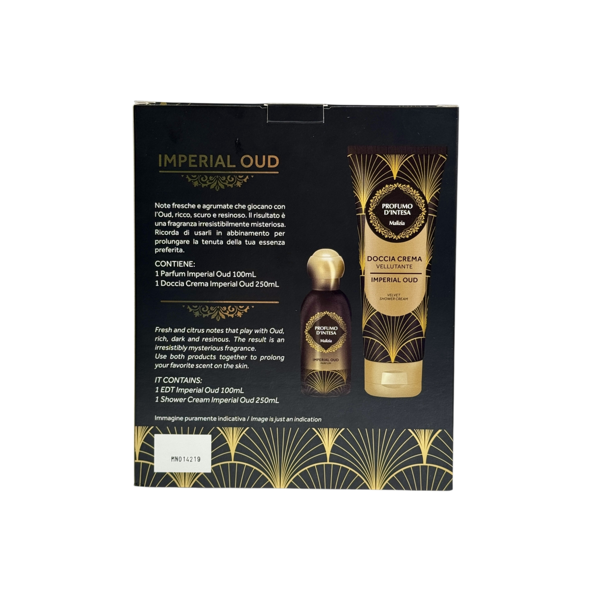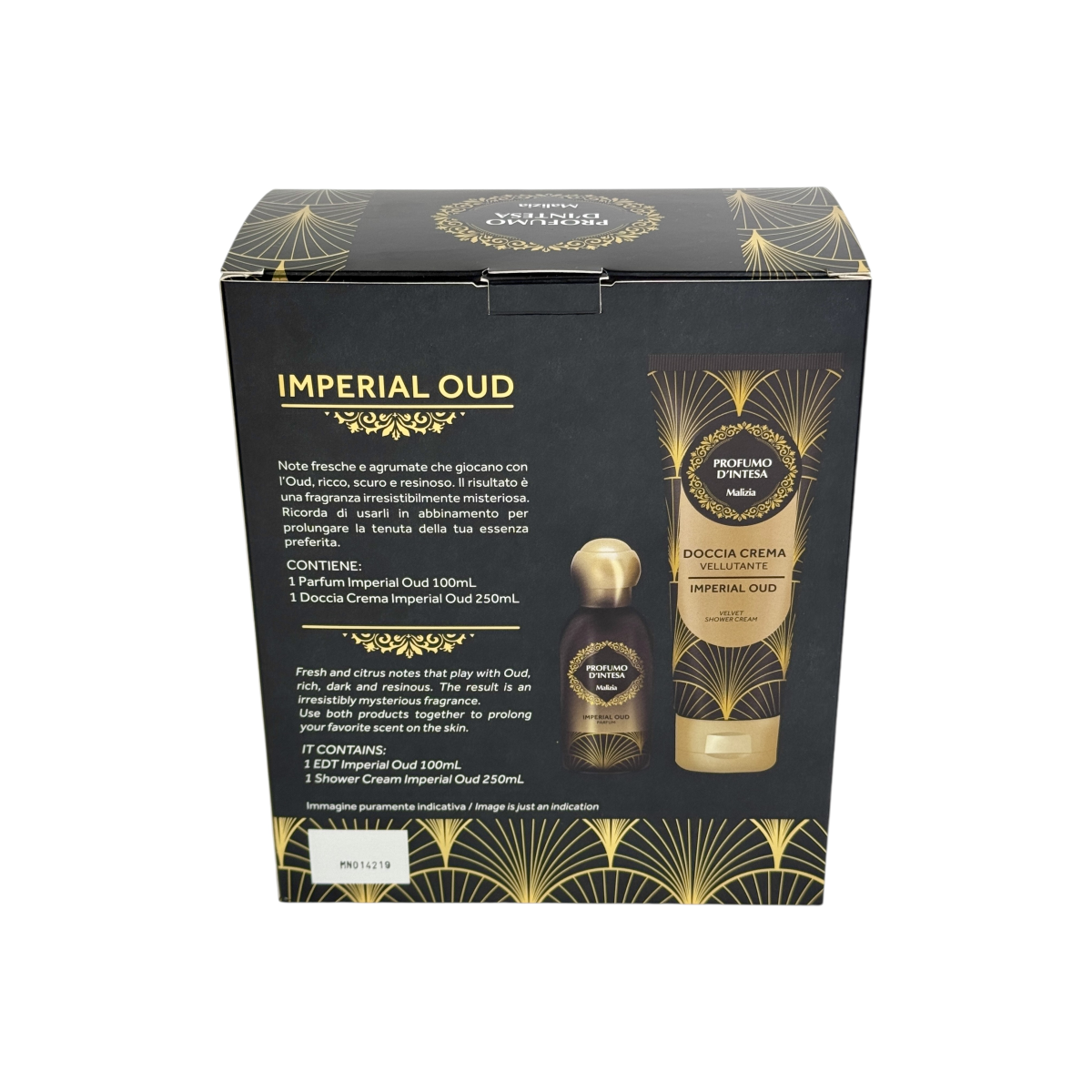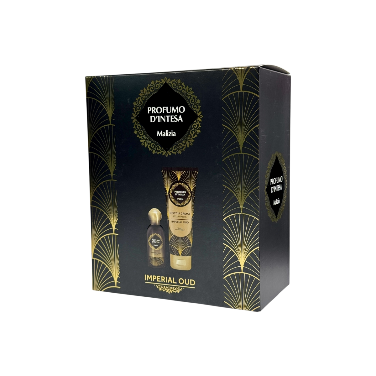 Подарунковий набір Malizia парфум та крем-гель для душу imperial oud e profumo d'intesa imperial oud doccia crema vellutante, 100 мл + 250 мл