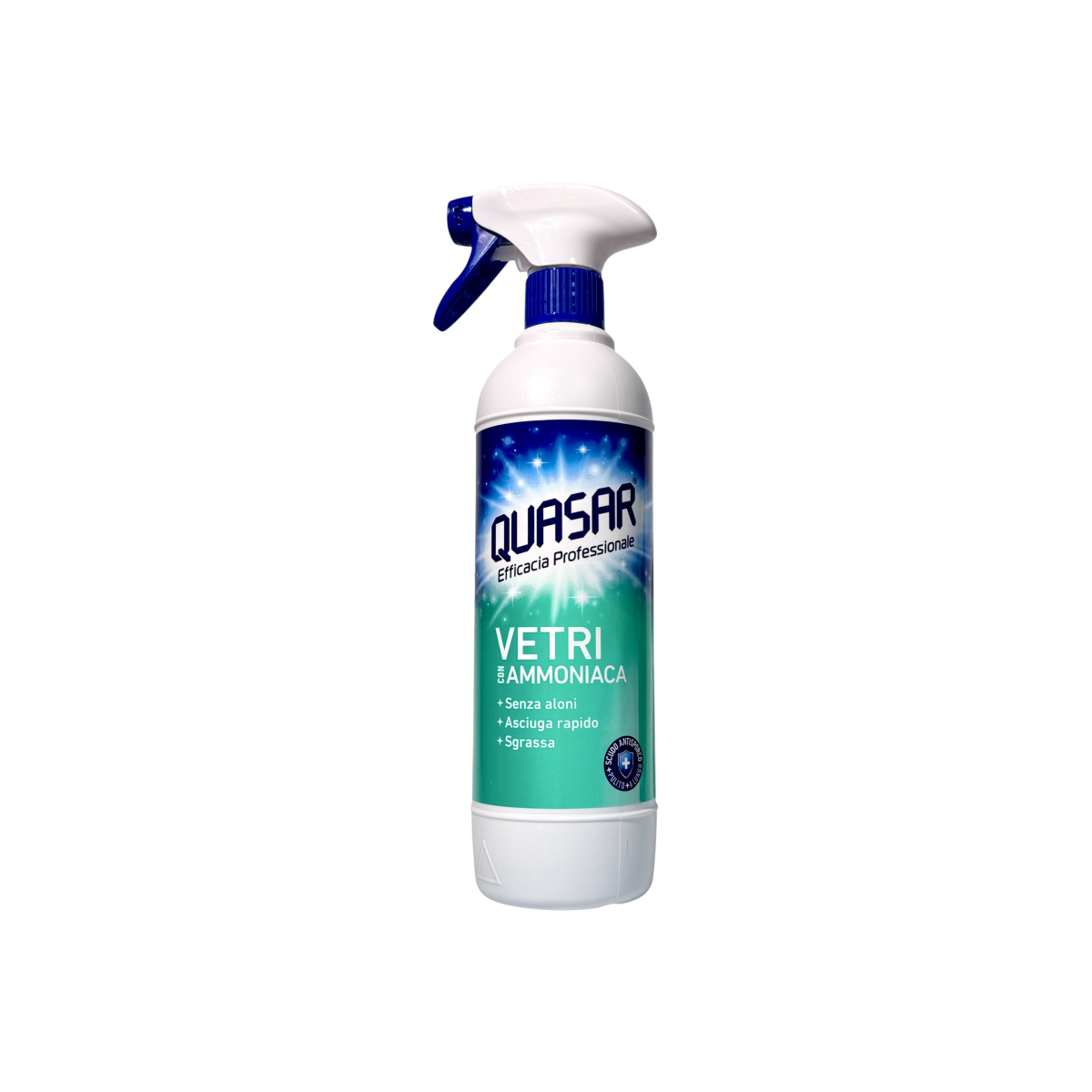 Професійний італійський засіб для скла Quasar Vetri con Ammoniaca забезпечує ідеальну чистоту без розводів і швидке висихання.