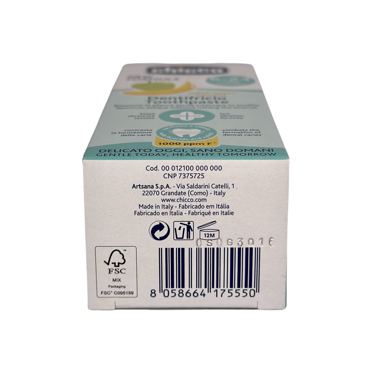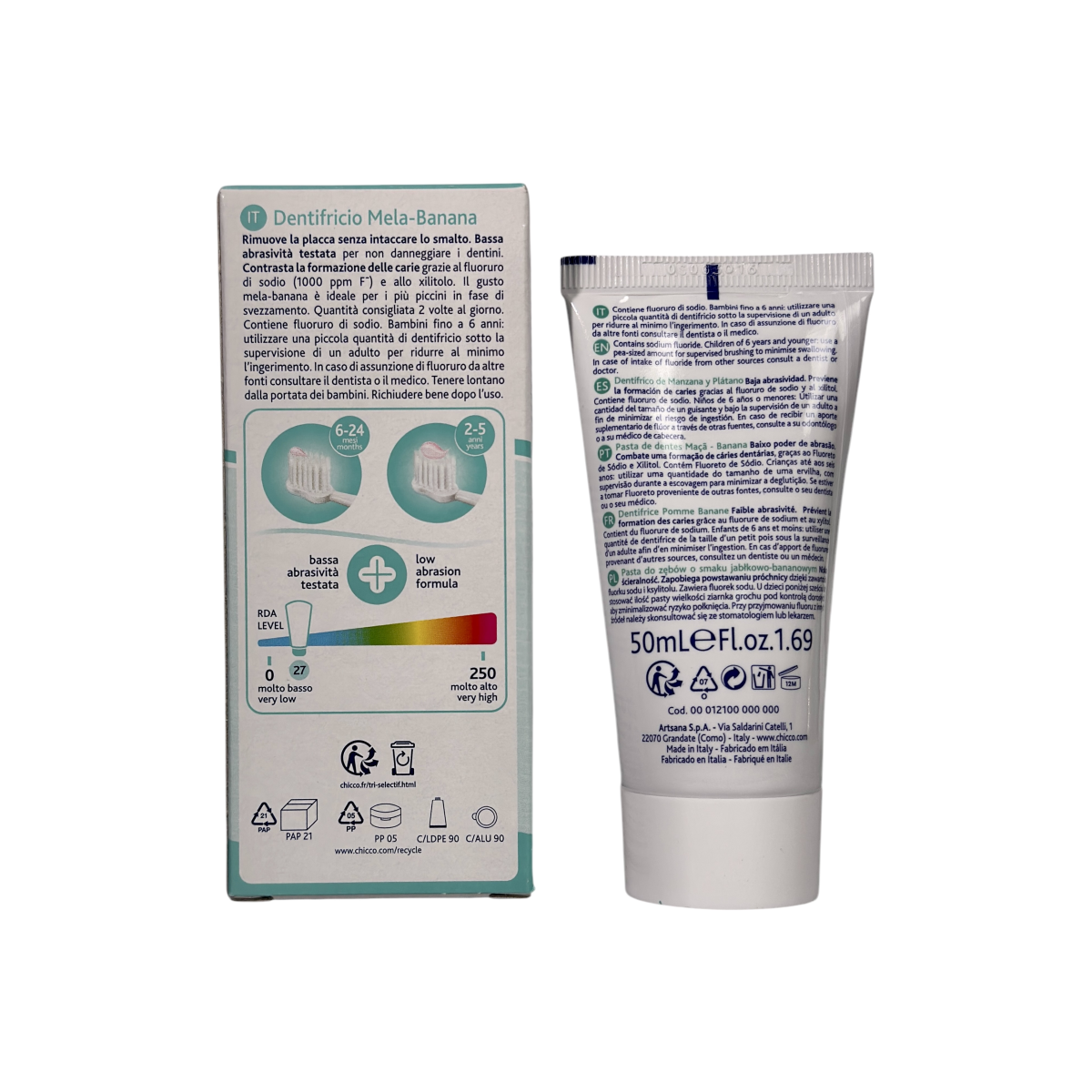 Зубна паста дитяча Chicco яблуко-банан dentifricio per bambini mela-banana 6-24 mesi, 50 мл