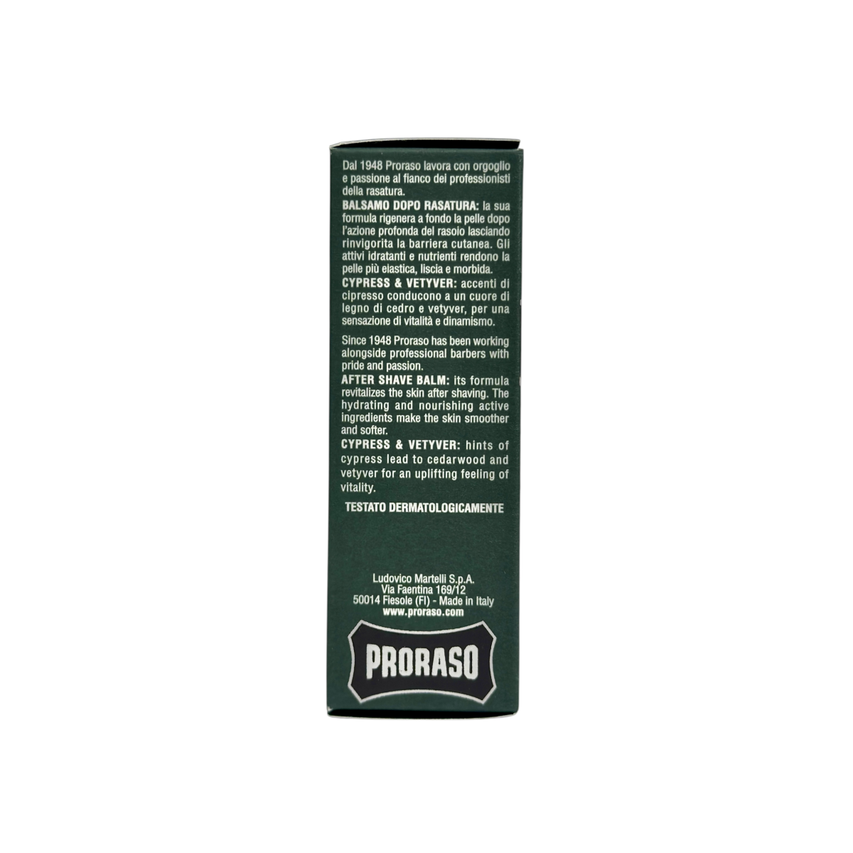 Proraso Firenze — легендарний бренд чоловічої косметики з Італії, відомий серед професійних барберів у всьому світі. Бальзам після гоління Cypress & Vetyver розроблений для догляду за шкірою після бриття: його формула глибоко зволожує, відновлює та робить шкіру гладкою і м’якою. Свіжий деревно-пряний аромат кипариса та ветиверу створює витончений чоловічий шлейф і дарує відчуття впевненості на цілий день.