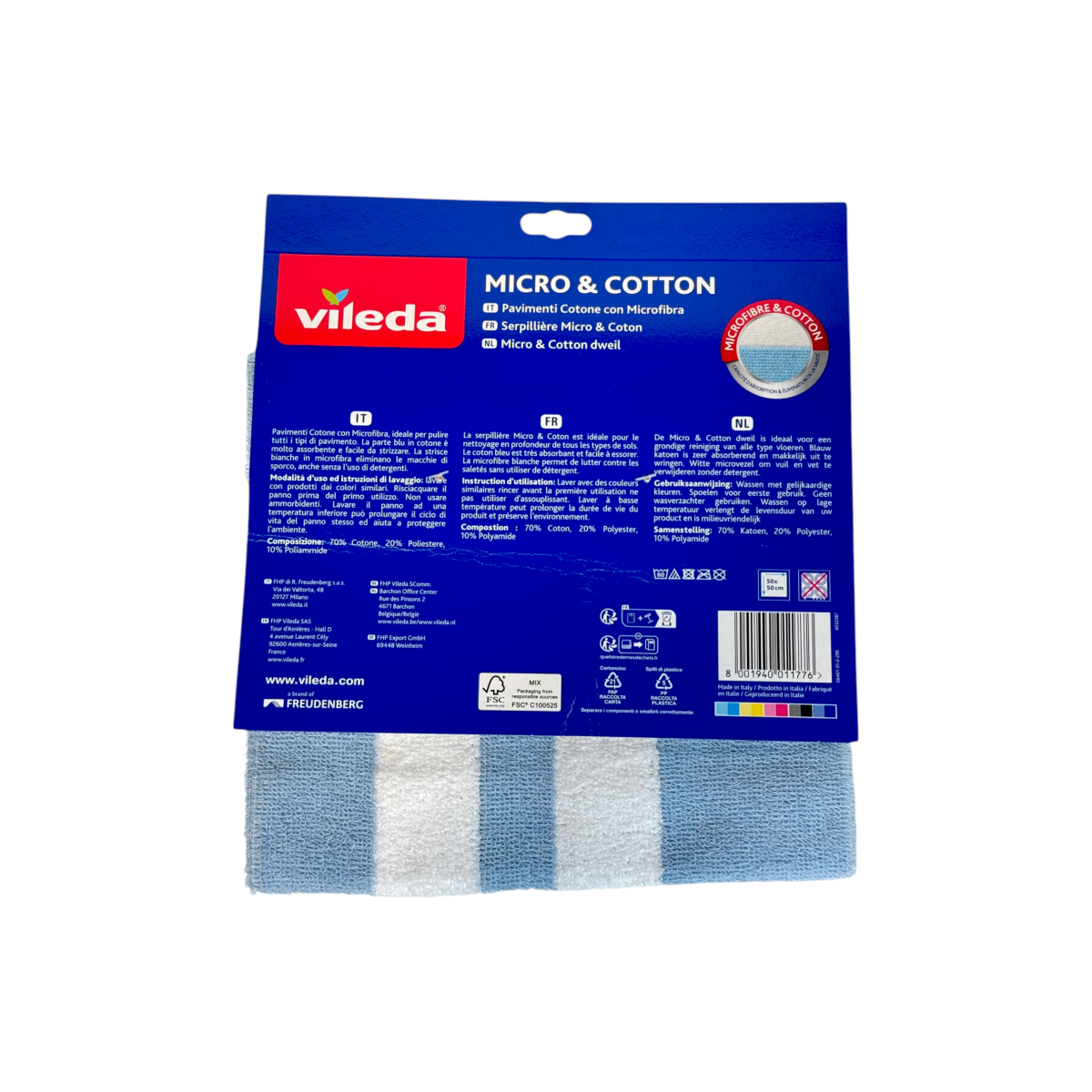 Професійна серветка Vileda Micro & Cotton — універсальний помічник для миття всіх типів підлог. Поєднання бавовни та мікрофібри забезпечує ідеальний баланс між високою вбиральністю та ефективним видаленням бруду без потреби у великій кількості миючих засобів.