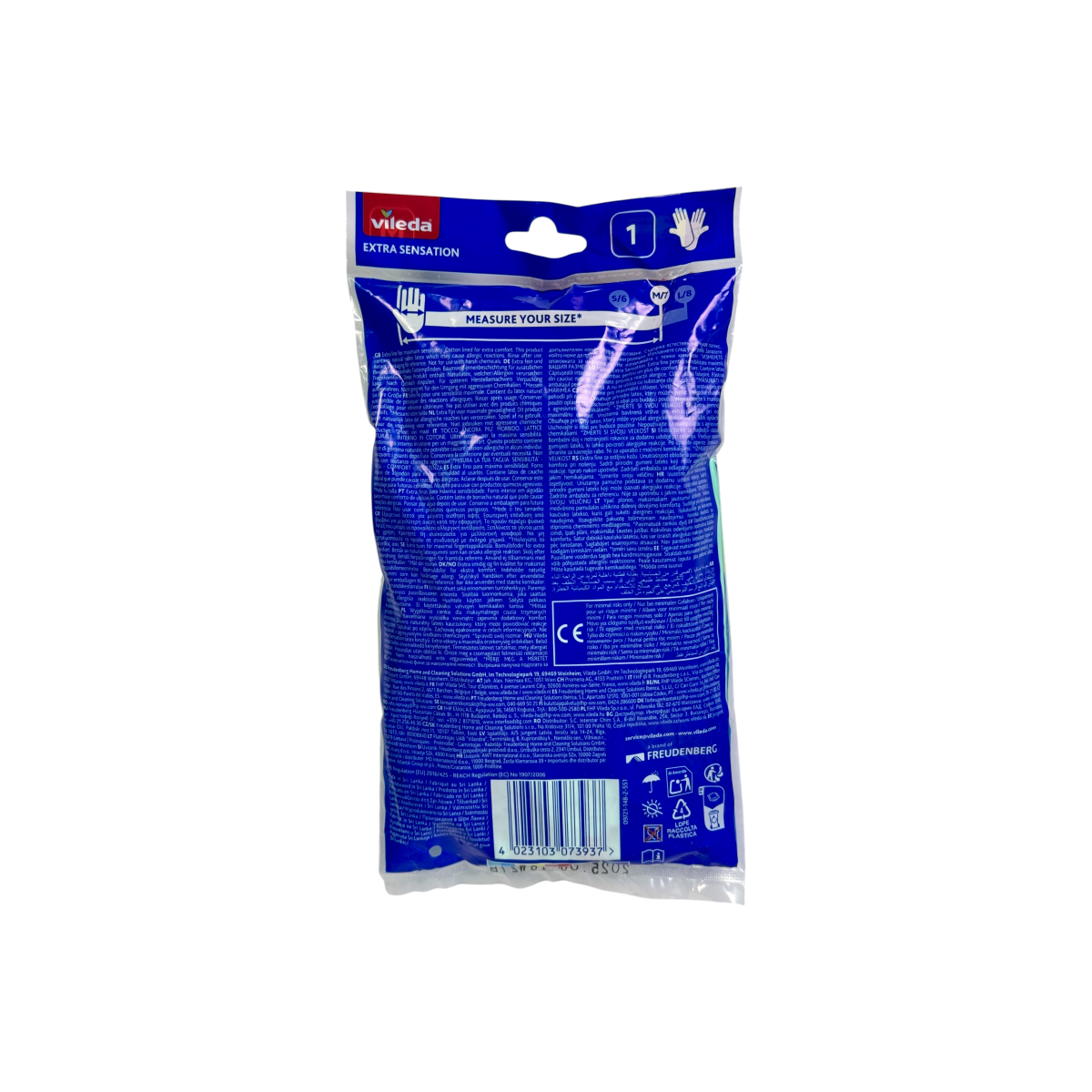 Латексні рукавички Vileda Extra Sensation забезпечують захист рук під час прибирання, миття посуду та інших домашніх робіт, залишаючись при цьому дуже тонкими та зручними.