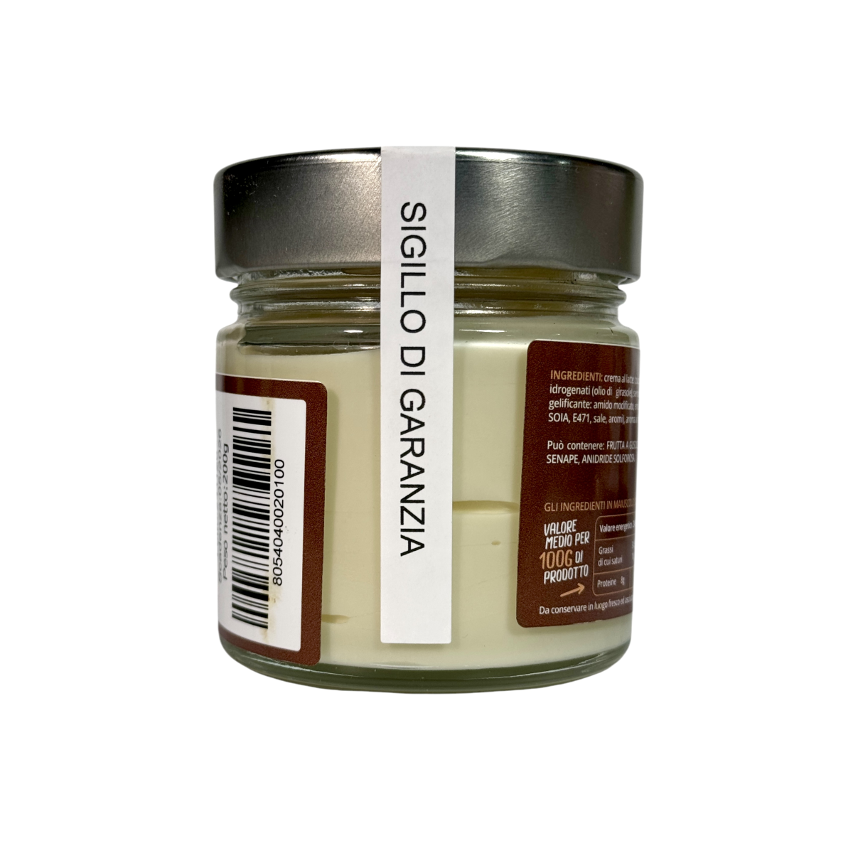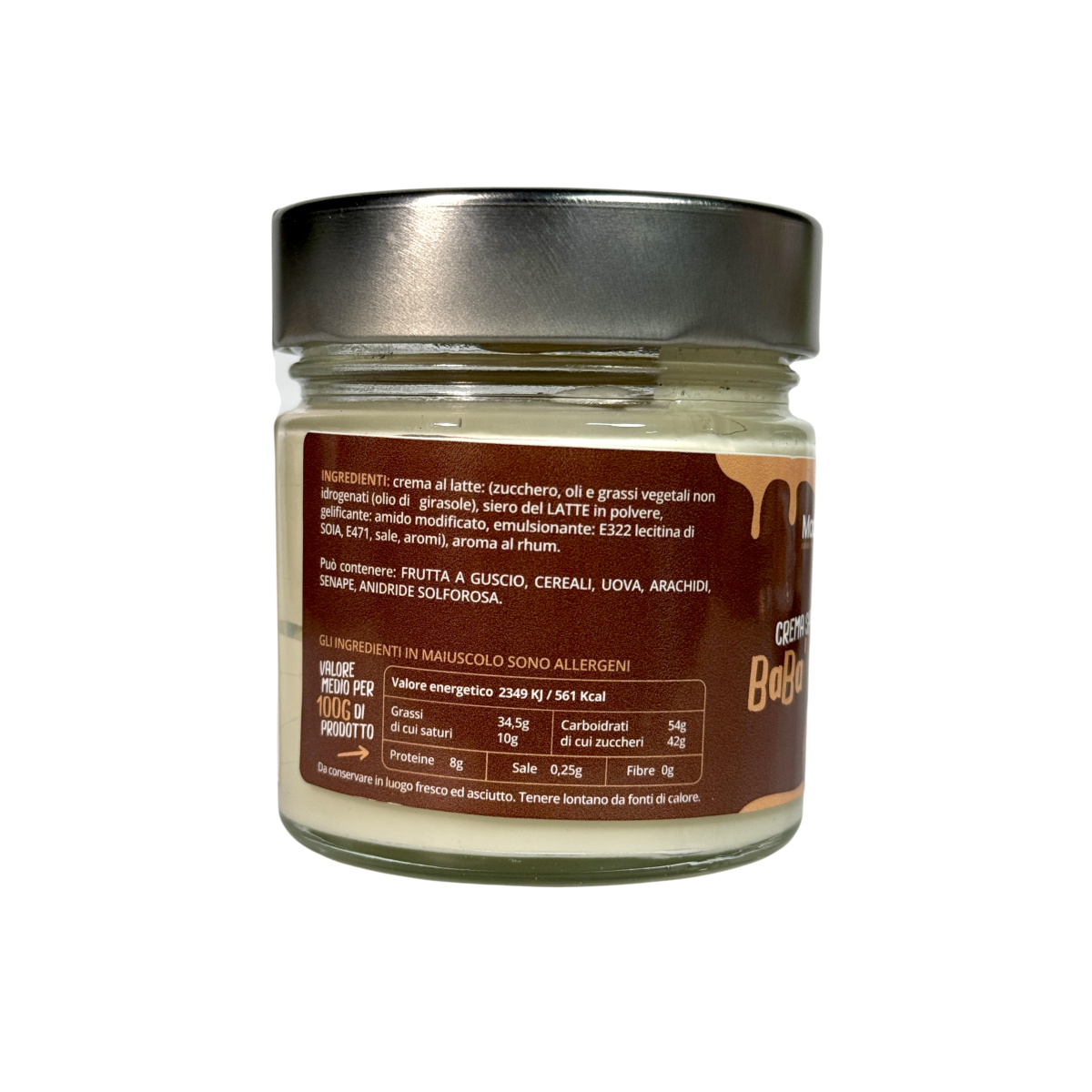 Цей крем-намазка має шовковисту текстуру і приємний вершковий смак із делікатними нотками рому. Ідеально підходить для намазування на тости, круасани, млинці або як начинка для десертів. Виготовлений в Італії з якісного молока та рослинних олій, без штучних барвників.