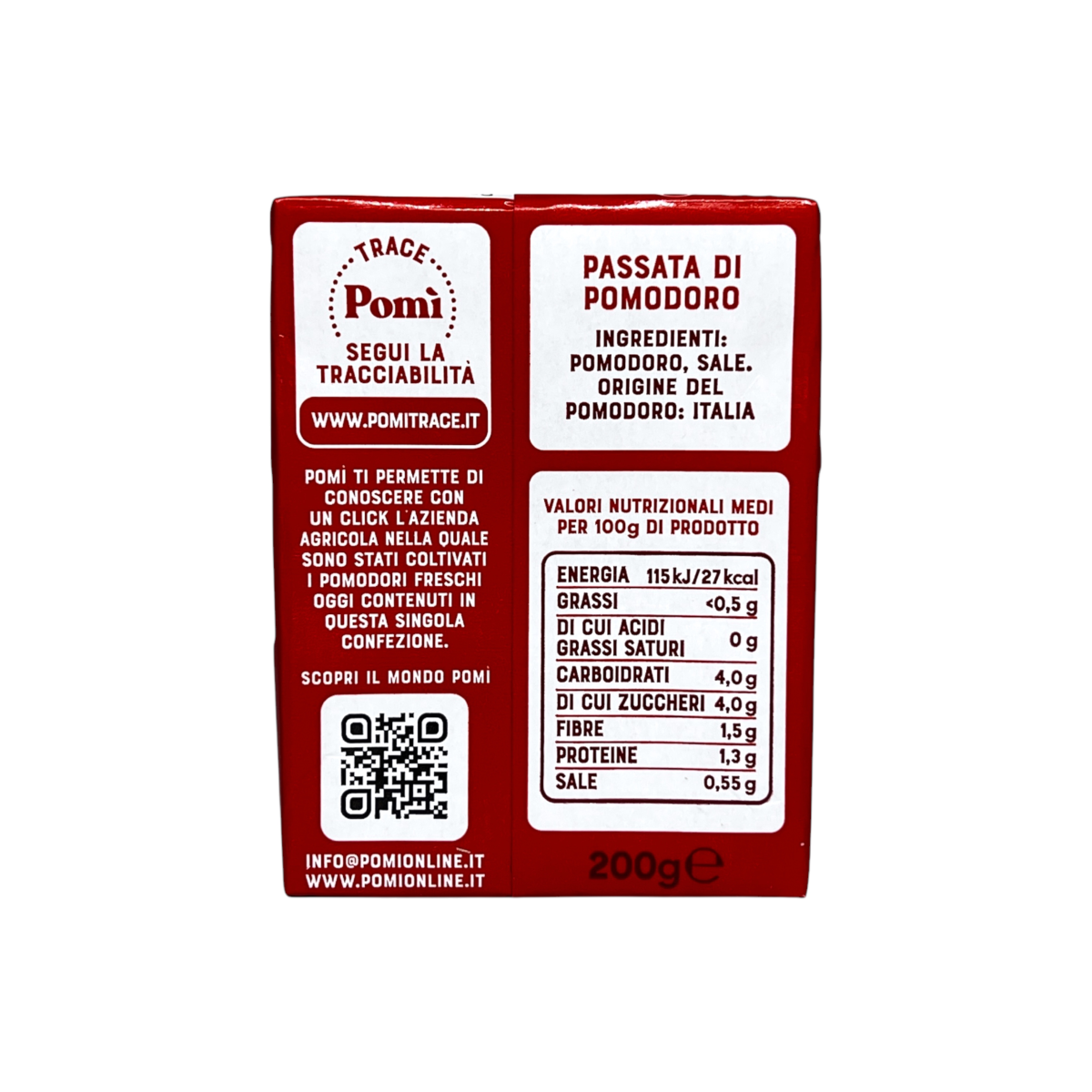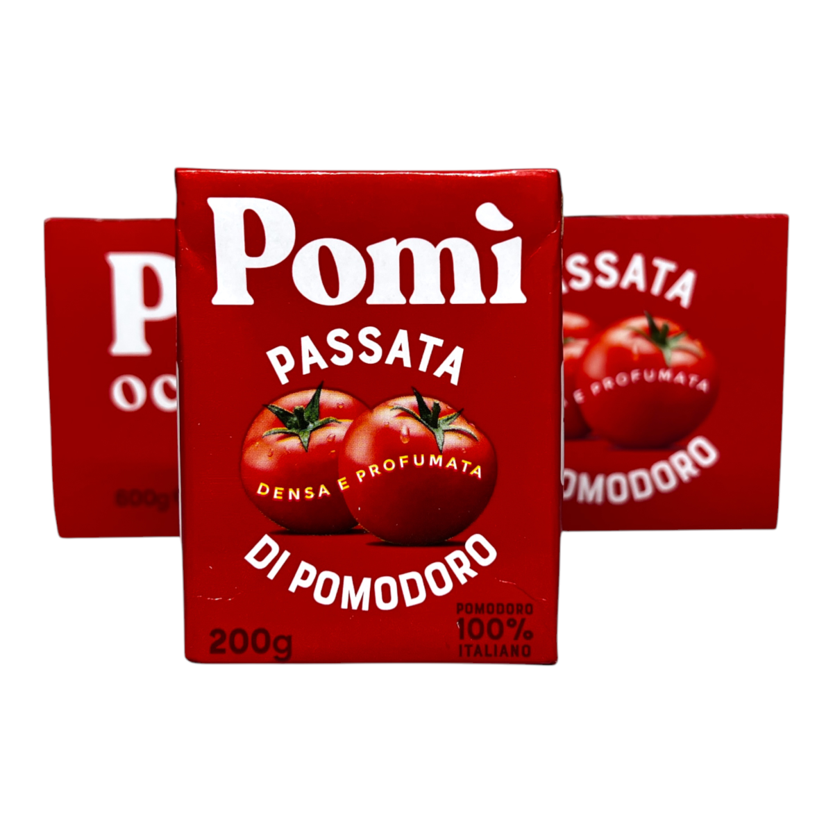 Натуральне томатне пюре Pomì Passata di Pomodoro виготовлене зі свіжих італійських томатів, вирощених під сонцем долини річки По. Це класична густо-пахуча пасата з насиченим смаком стиглих помідорів, без додавання консервантів чи барвників.