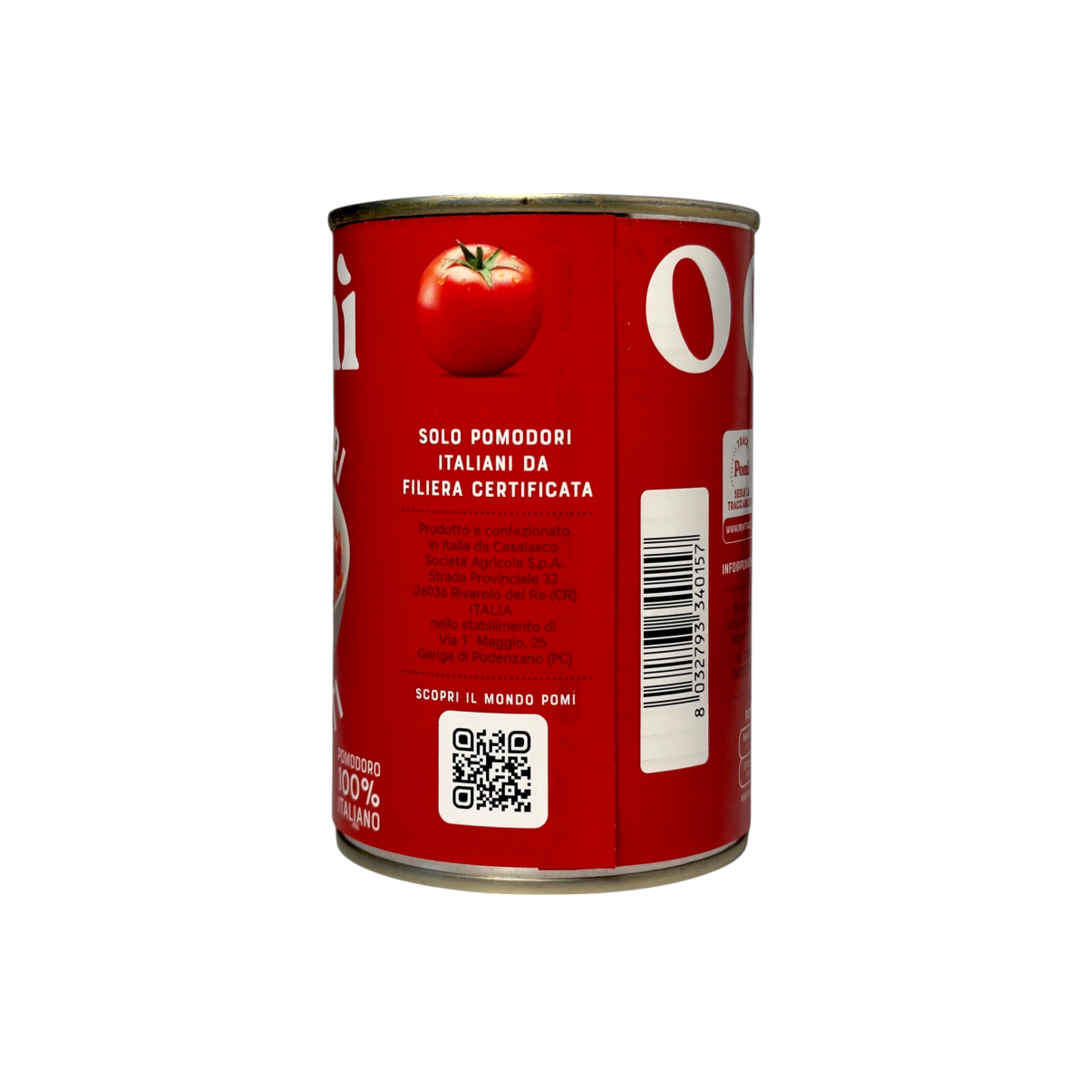 Pomì — це відомий італійський бренд із понад 40-річною історією, який гарантує 100% італійське походження своїх помідорів. Томати вирощуються без ГМО, обережно нарізаються та консервуються у власному соку без додавання консервантів чи барвників. Продукт зберігає природний смак, колір і аромат свіжих помідорів.