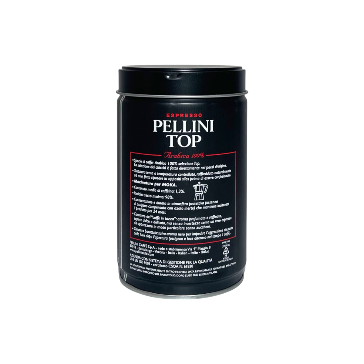 Pellini Top — це справжня класика італійського еспресо. Виготовлена зі 100% арабіки, ця кава має делікатний аромат з нотами какао, квітів та легких фруктів. Повільне обсмаження при контрольованій температурі розкриває природну солодкість зерен, а низький вміст кофеїну (приблизно 1,3%) робить напій м’яким і приємним навіть при частому вживанні. Кава зберігається у герметичній жерстяній банці в захисній атмосфері, що гарантує свіжість аромату до останньої чашки.