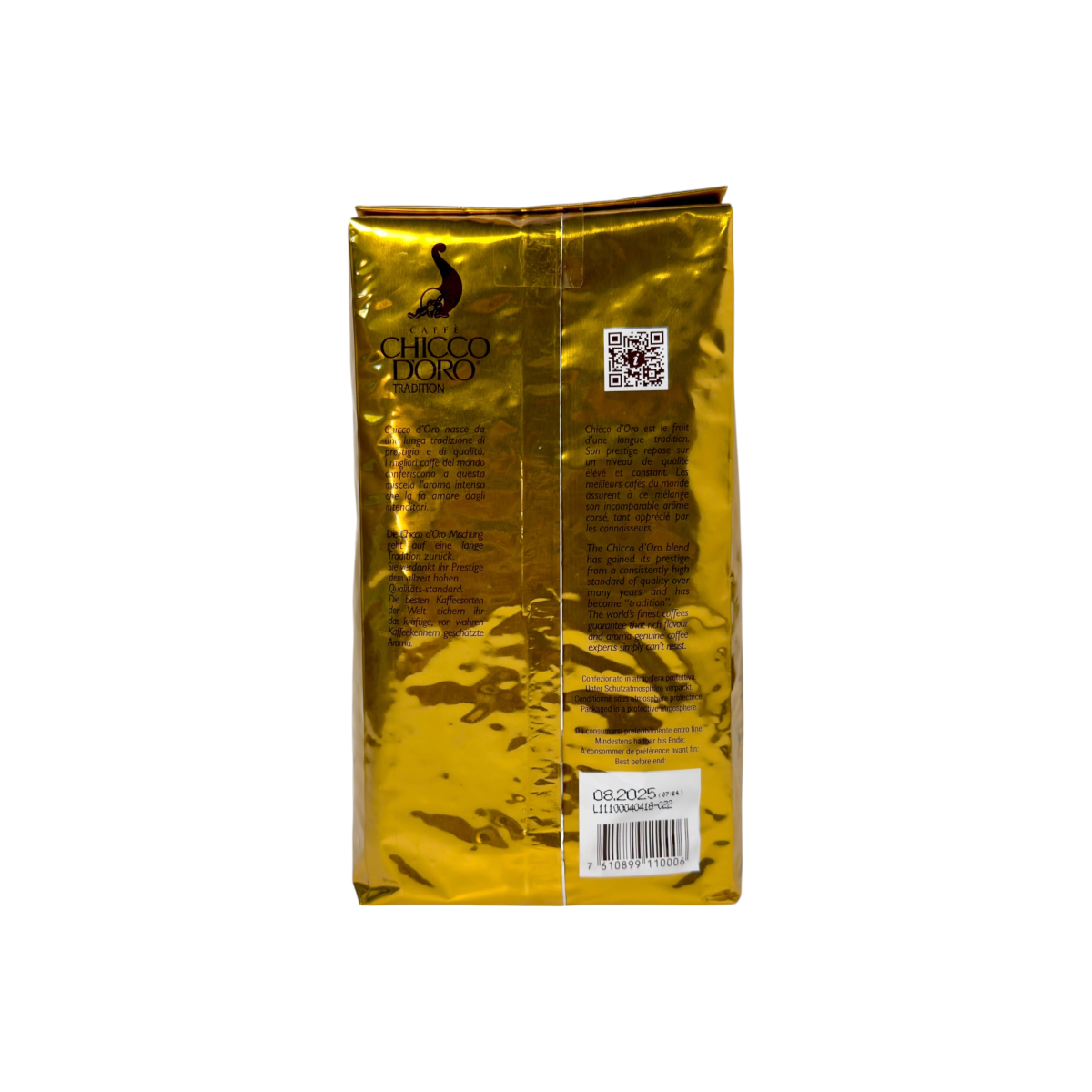 Chicco d’Oro Tradition — це результат швейцарської точності та італійської кавової традиції. Містить зерна найкращих сортів арабіки, вирощених на високогірних плантаціях Центральної та Південної Америки. Кожна партія обсмажується повільно, щоб досягти ідеального балансу між ароматом, інтенсивністю та ніжною кислинкою. Кава має м’який смак з легкими нотами шоколаду та горіхів, густу крему і приємний післясмак.