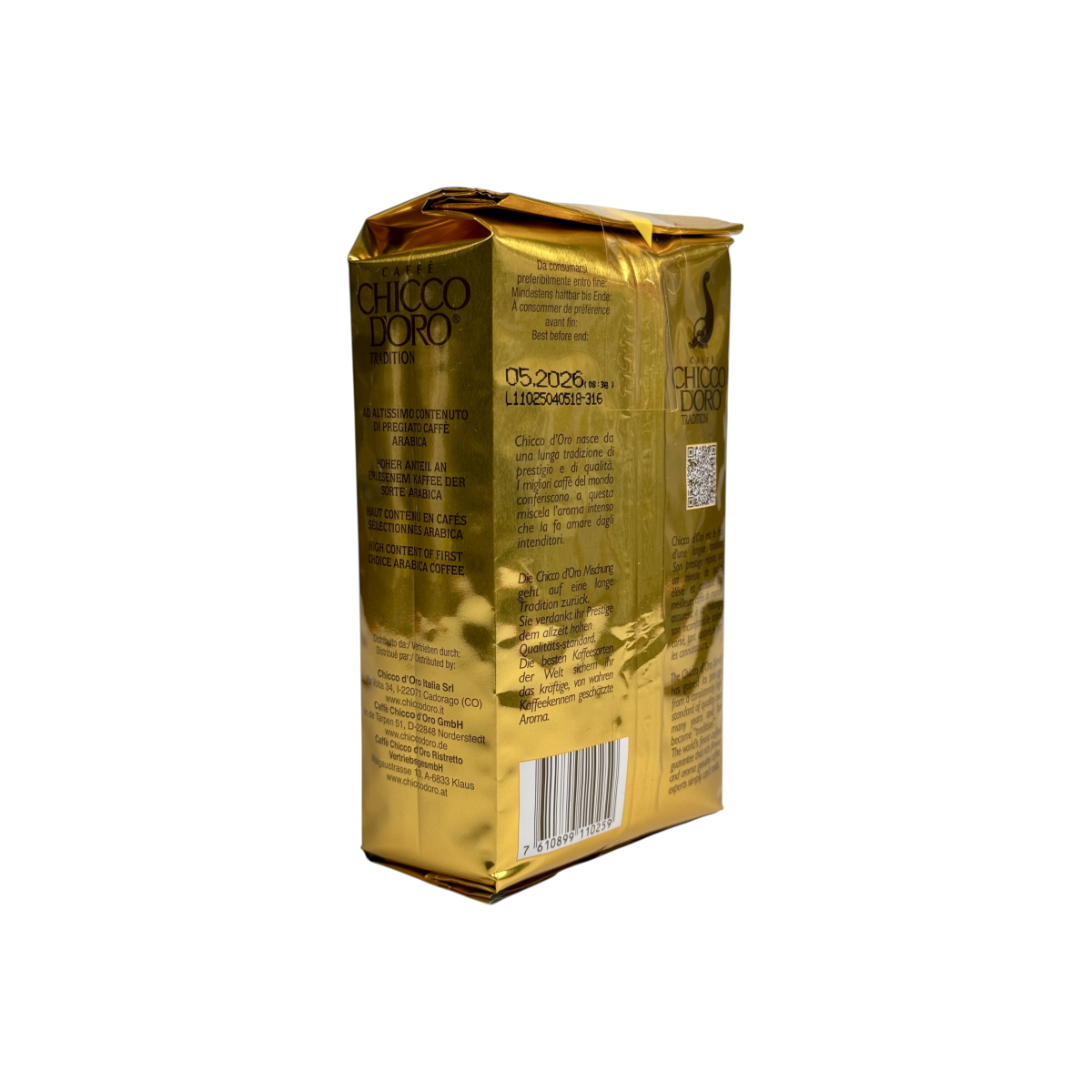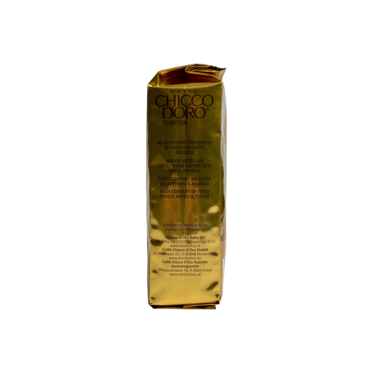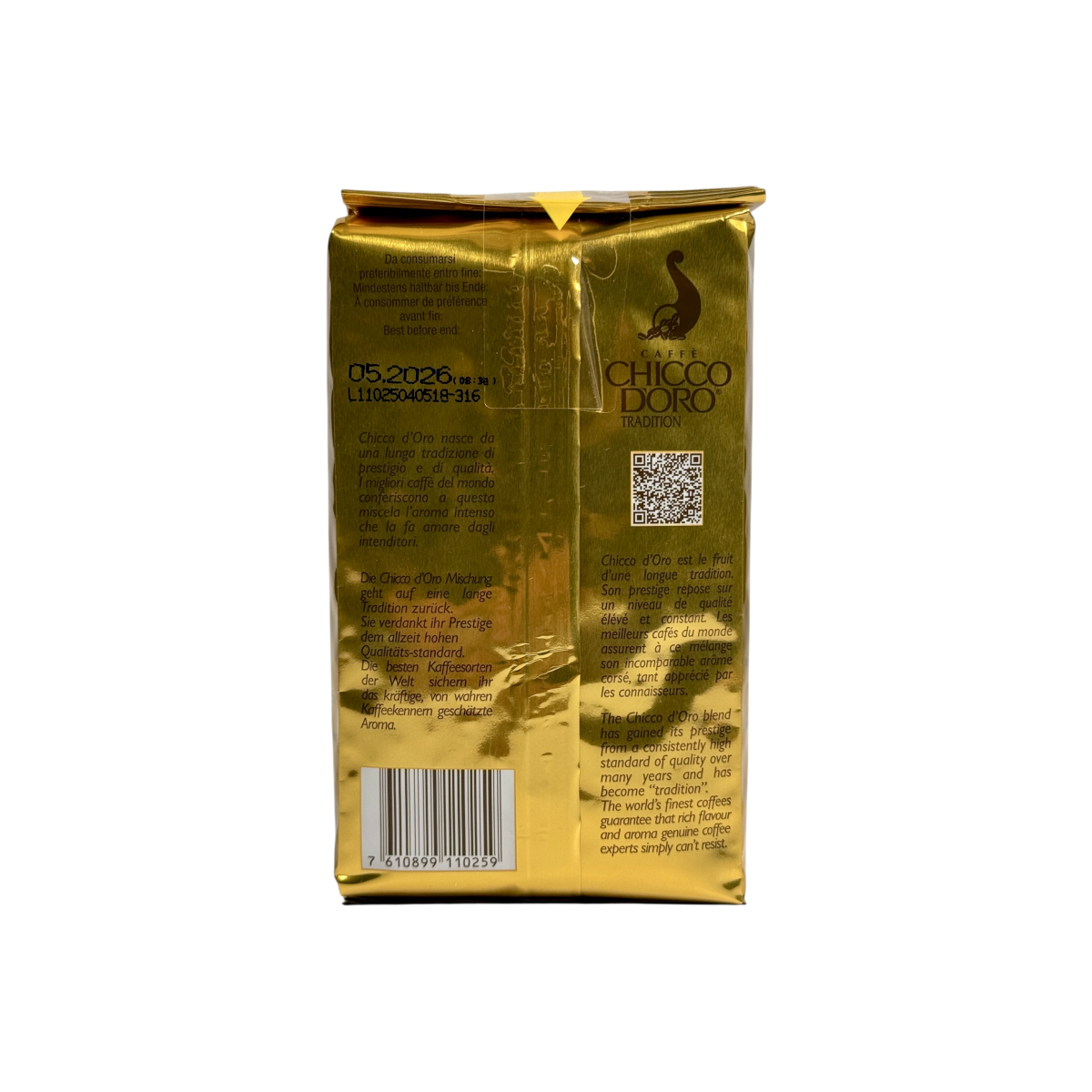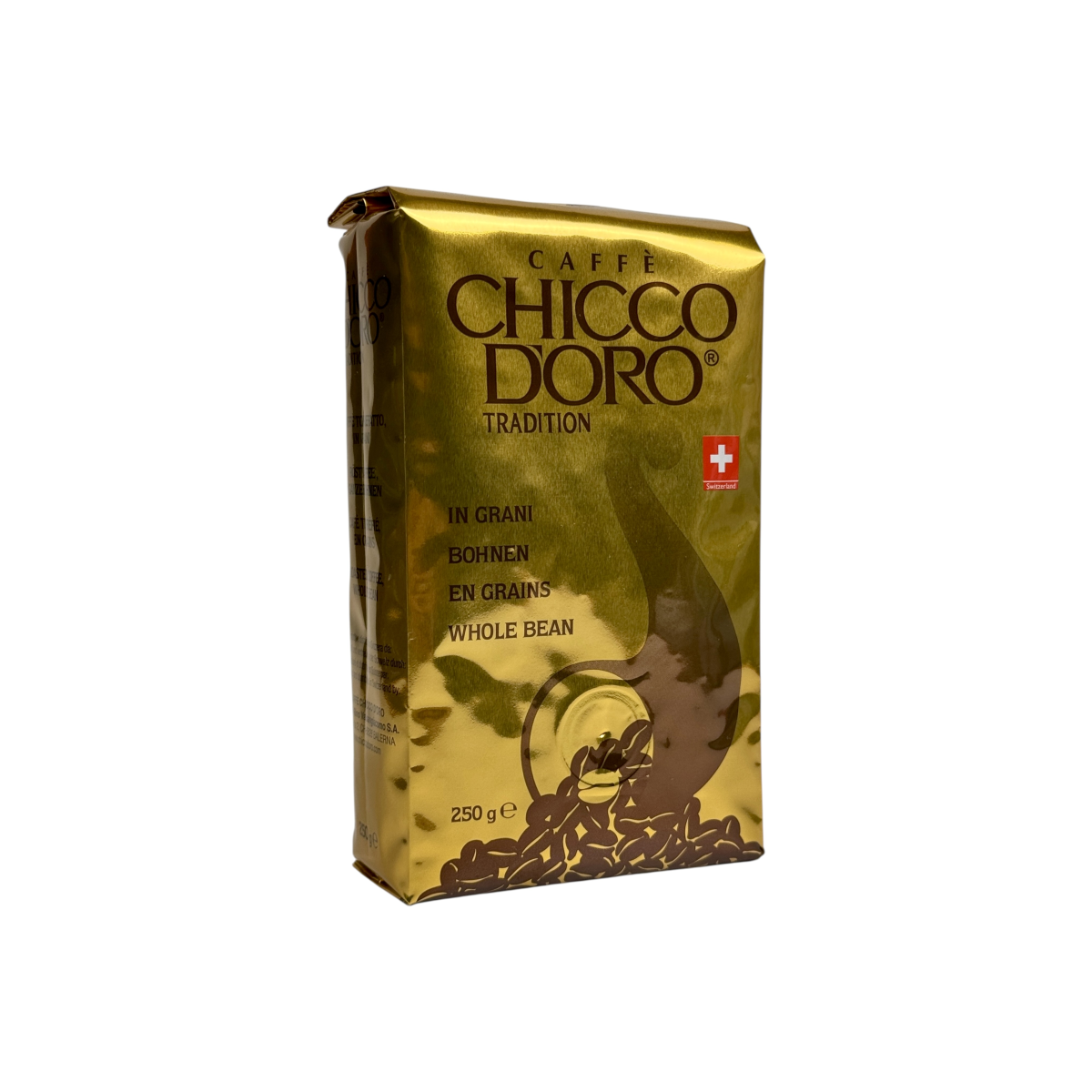 Chicco d’Oro Tradition — класична суміш кавових зерен із високим вмістом добірної арабіки. Виробляється у Швейцарії за багаторічними традиціями обсмажування, що гарантує багатий смак і стійкий аромат. Завдяки середньому обсмаженню кава має збалансований профіль: легка гірчинка, м’яка кислинка та виражена насиченість, які високо цінуються кавовими гурманами. Ідеально підходить для приготування еспресо, капучино та латте.