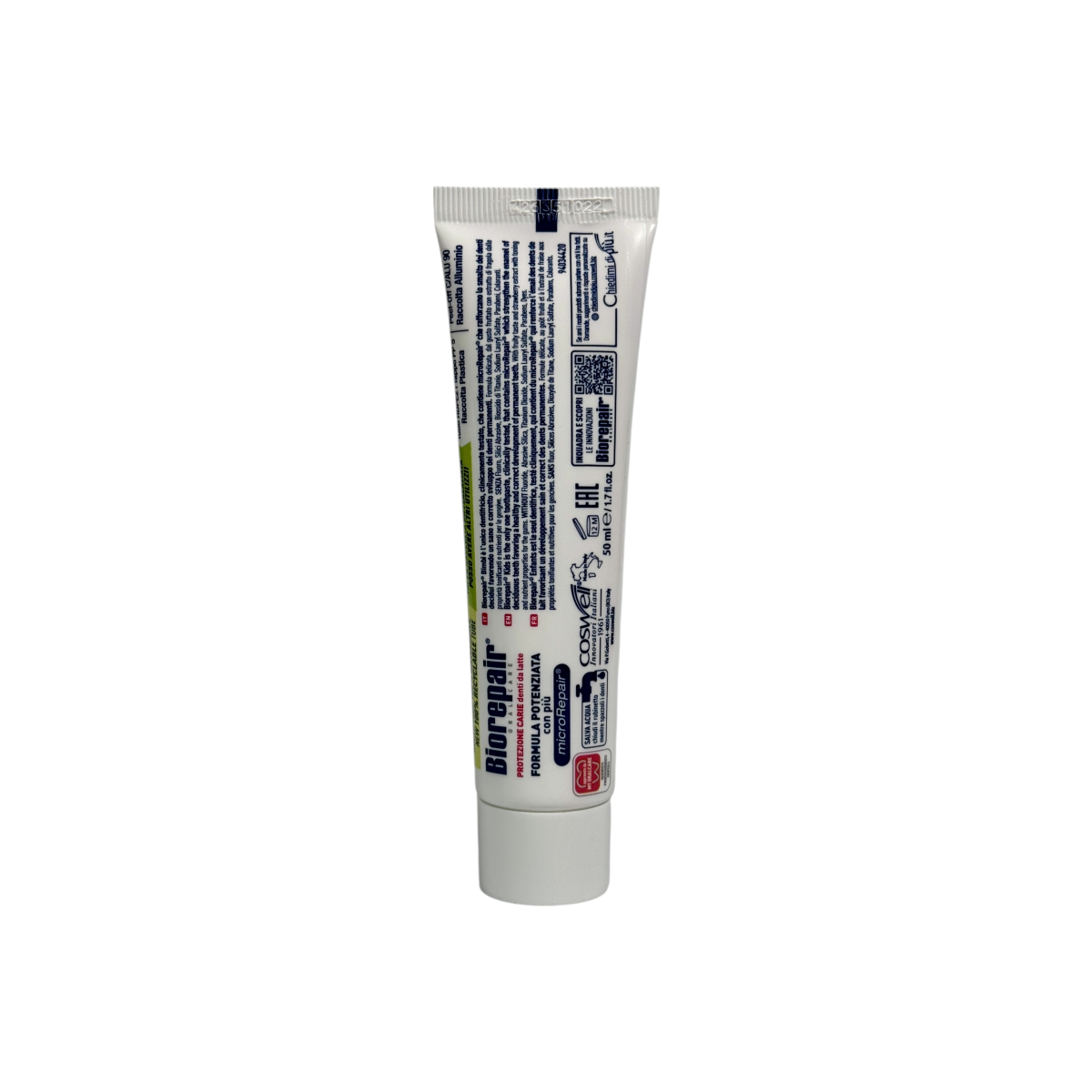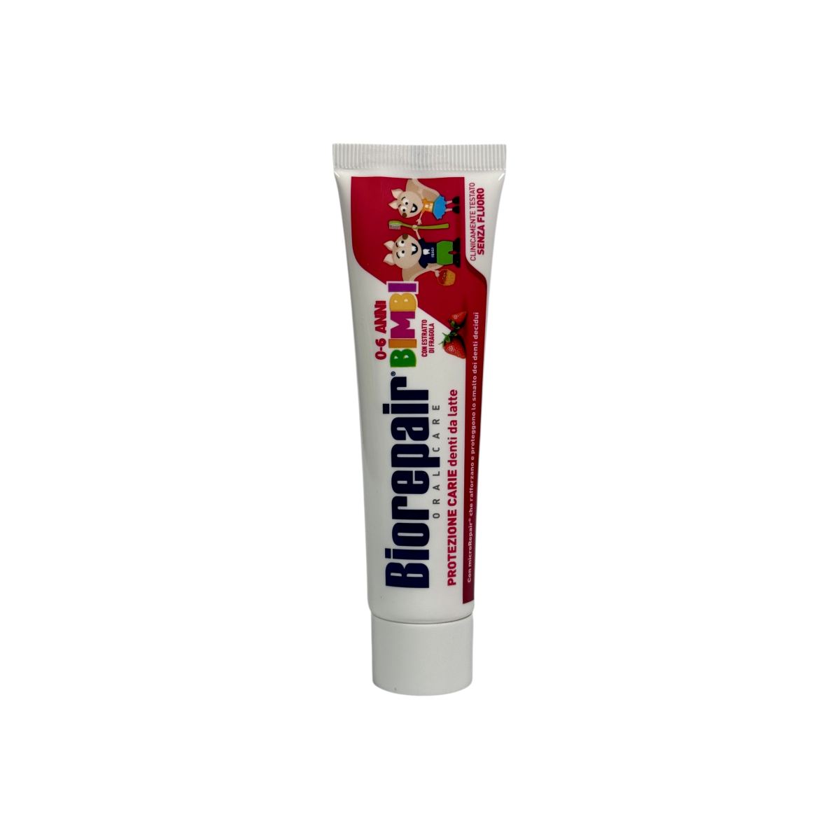 Biorepair Kids Bimbi — це італійська зубна паста, розроблена спеціально для дітей від народження до 6 років. Формула без фтору, парабенів і SLS робить її безпечною при випадковому ковтанні, а унікальні частинки microRepair® активно зміцнюють емаль молочних зубів. Легкий полуничний смак перетворює чищення зубів у приємний щоденний ритуал. Biorepair — бренд №1 в Італії для захисту емалі, який рекомендують педіатри та стоматологи.