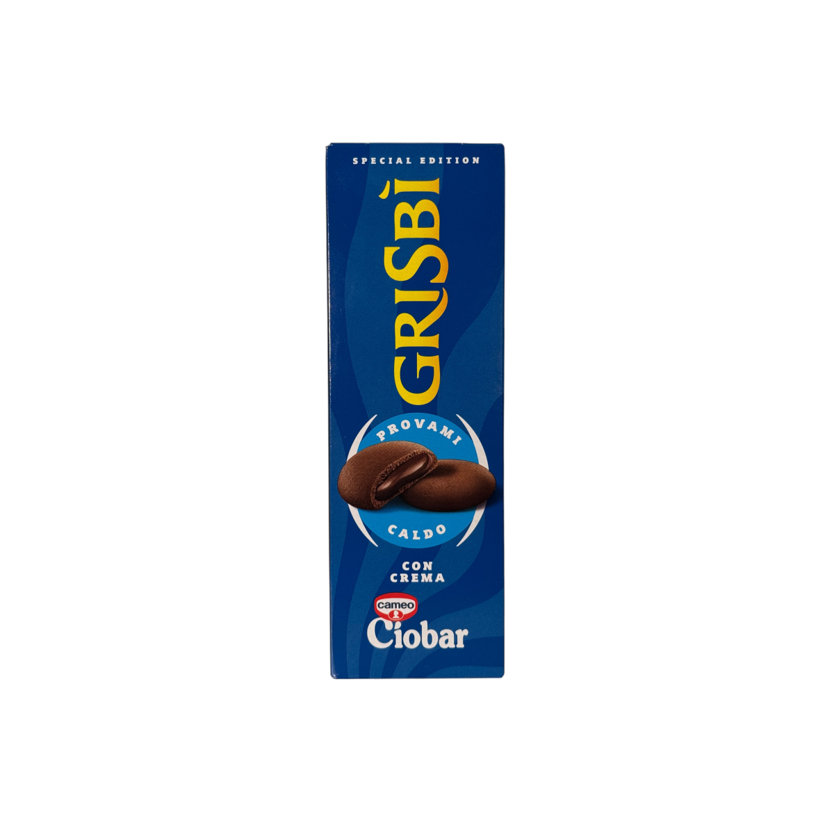 Ексклюзивне італійське печиво Grisbi Ciobar — це особлива лімітована серія, у якій хрустке пісочне тісто поєднується з ніжною кремовою начинкою Ciobar — легендарного густого гарячого шоколаду від Cameo.