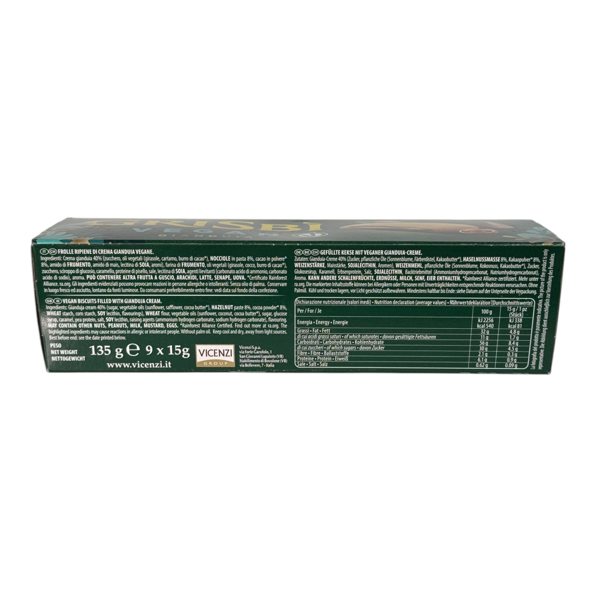 Печиво Grisbi vegan gianduia горіхово-шоколадне без пальмової олії, 135 г