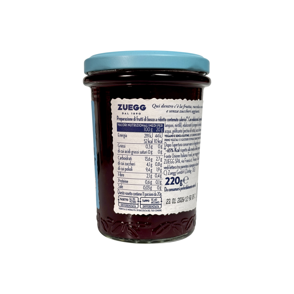 Джем Zuegg лісові ягоди без цукру zero zuccheri aggiunti frutti di bosco, 220 г