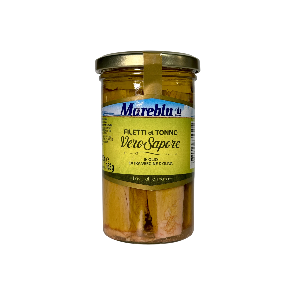 Ніжне італійське філе тунця Mareblu — створене для тих, хто цінує натуральний смак і справжню якість. Рибу відбирають вручну та заливають відбірною олією Extra Vergine d’Oliva, щоб зберегти текстуру, аромат і поживну цінність.