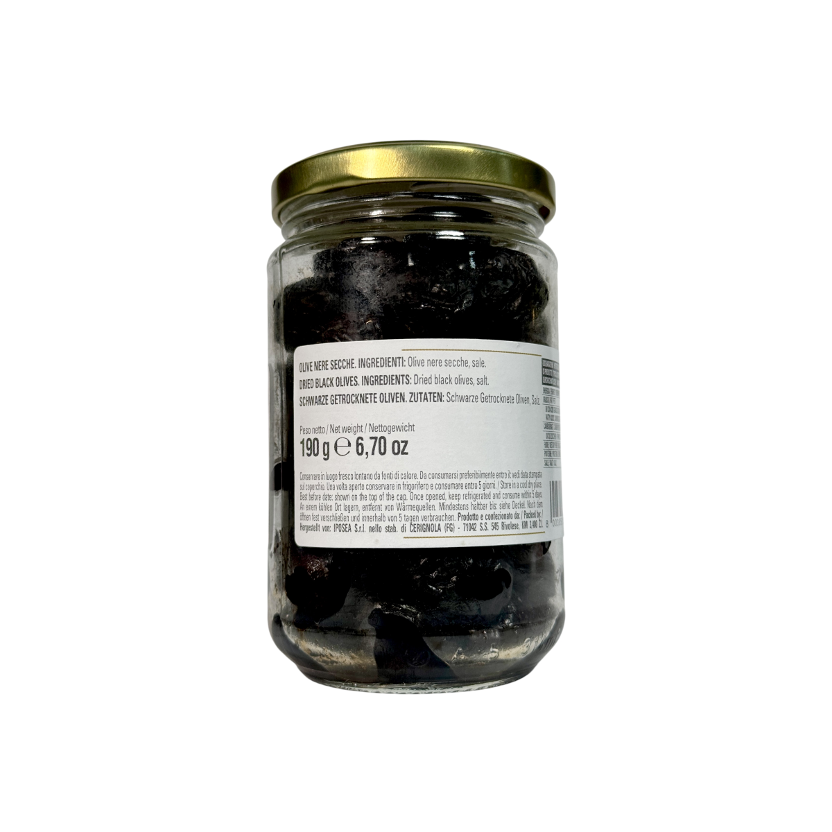 Чорні сушені оливки Iposea – це справжній витвір італійської гастрономії, що принесе вишуканий середземноморський смак у ваші страви. Виготовлені з ретельно відібраних оливок, висушених за традиційною технологією, вони мають глибокий, насичений аромат і неперевершений смак. Вони чудово підходять для аперитивів, салатів, пасти, піци та інших страв.