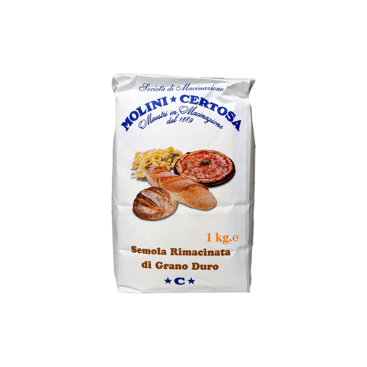Борошно Molini Certosa Semola Rimacinata — це класична італійська семоліна подвійного помелу, виготовлена з твердих сортів пшениці grano duro, ідеальна для приготування пасти, піци, хліба та домашніх макаронів.