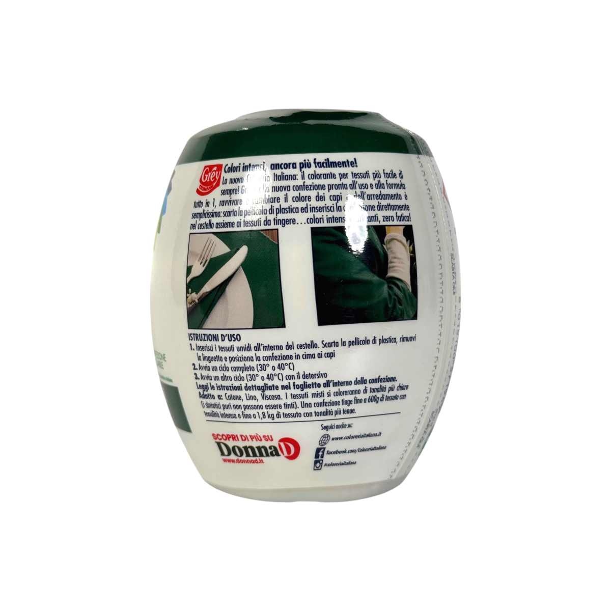 Створіть стильний еко-образ з італійським барвником Coloreria Italiana Verde Foresta! Цей професійний барвник дозволяє легко та безпечно пофарбувати тканини в розкішний лісовий зелений колір прямо у вашій пральній машині. Купуючи у нас, ви отримуєте оригінальний італійський продукт прямо від виробника - ми є прямими постачальниками, тому гарантуємо найвищу якість за найкращою ціною. Наш товар є повністю оригінальним та виконаний для внутрішнього ринку Італії, що означає максимальну ефективність без компромісів. Унікальна формула забезпечує інтенсивне та рівномірне забарвлення, надаючи тканинам глибокий природний зелений відтінок. Ідеально підходить для створення еко-стилю, оновлення гардеробу або експериментів з природними кольорами.