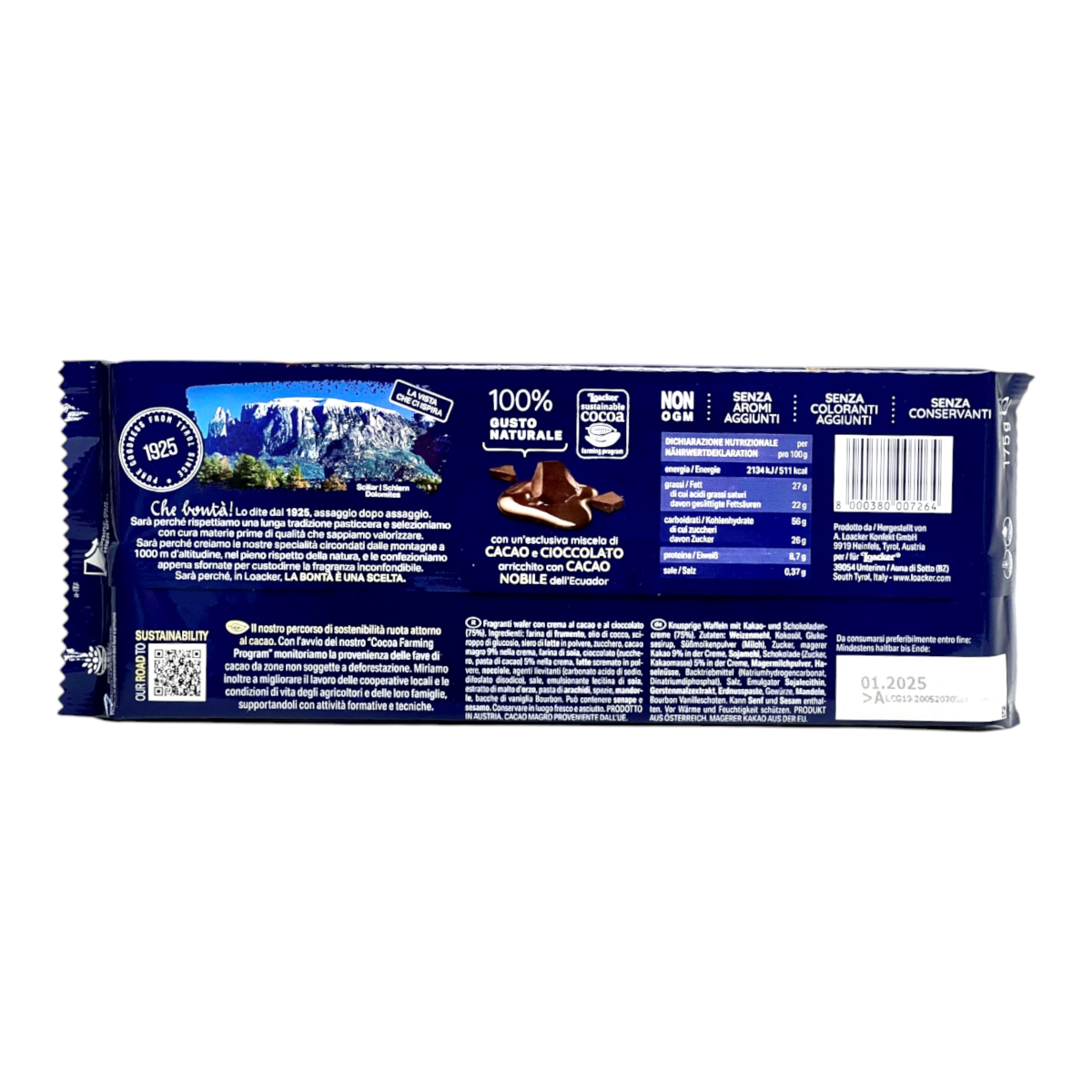 Вафлі Loacker з шоколадним кремом crem kakao, 175 г