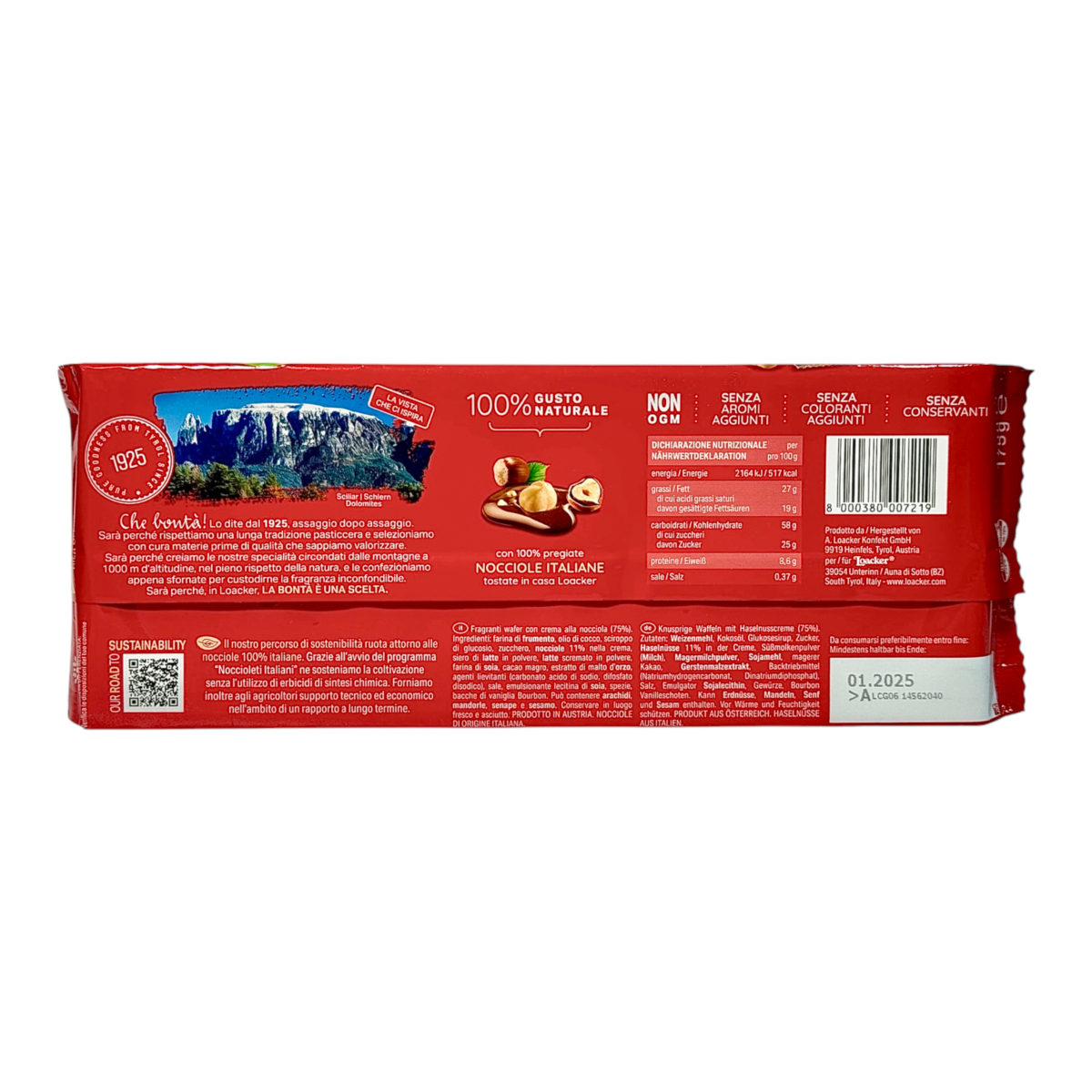 Вафлі Loacker з горіховим кремом napolitaner con nocciole italiane, 262,5 г