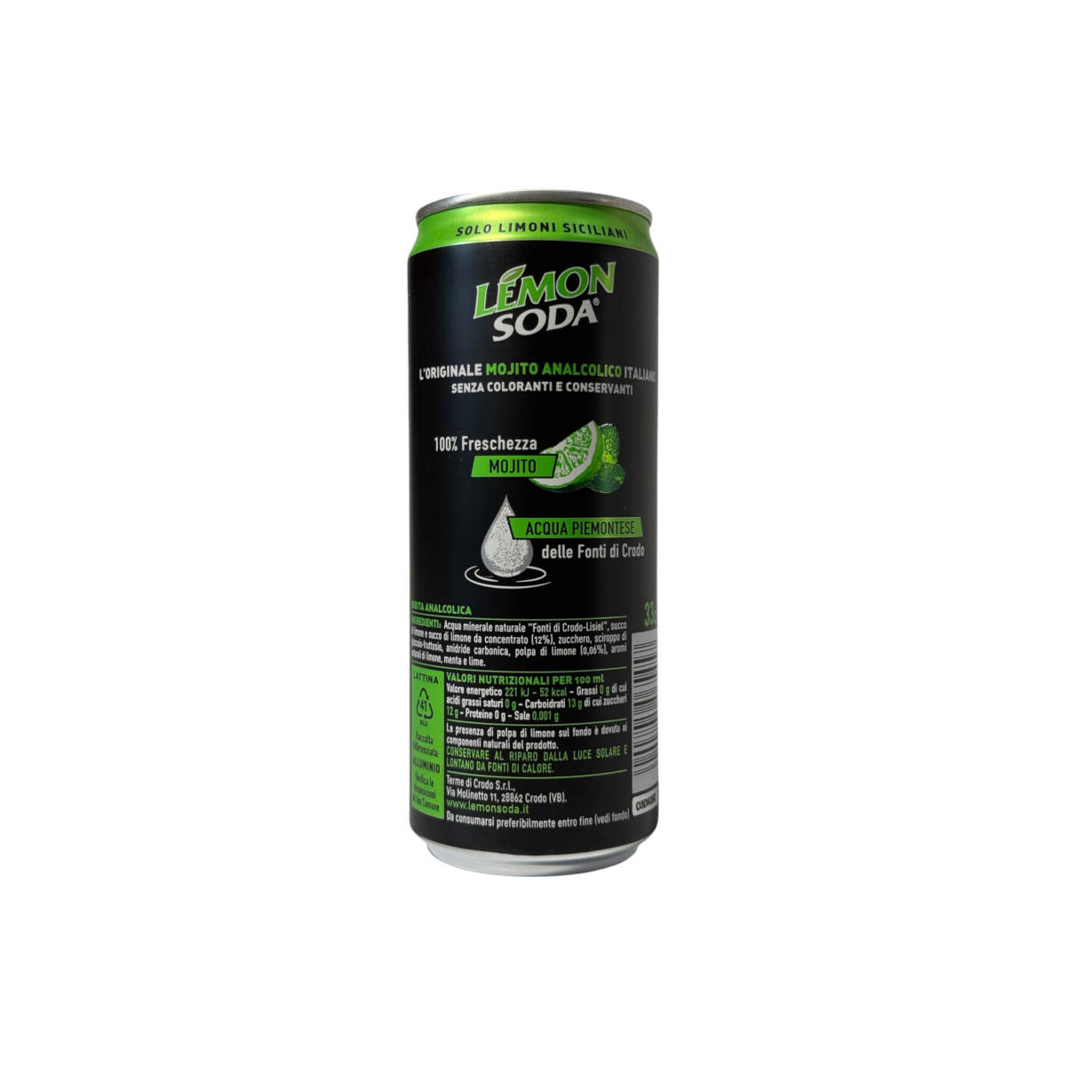 Цей напій створено в Італії з натурального лимонного соку, м’яти та цукру для того, щоб подарувати класичний смак мохіто без алкоголю. Lemon Soda — відомий бренд із 1931 року, що поєднує традиції та інновації, пропонуючи насичений смак і освіжаючу газовану текстуру. Ідеально підходить для втамування спраги, вечірок, пікніків чи як мікс у коктейлях.