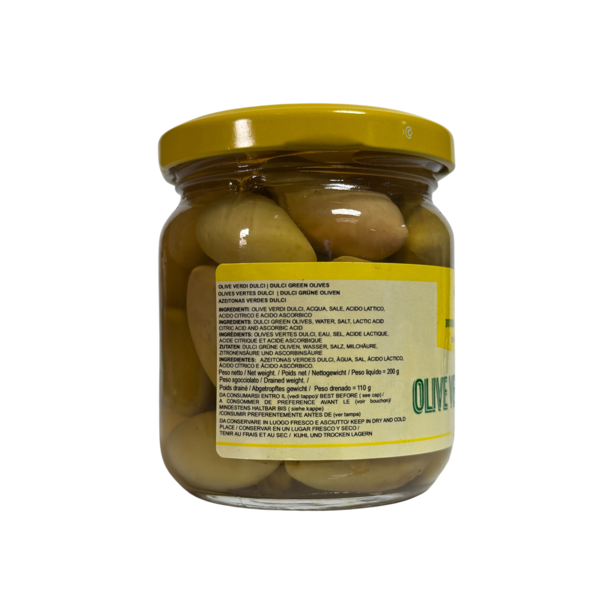 Оливки Buon Appetito Olive Verdi Dulci вирощені на сонячних плантаціях Італії та оброблені за традиційним рецептом без додавання ГМО і консервантів. Вони мають м’який, делікатний смак без надмірної гіркоти, тому ідеально підходять як закуска, інгредієнт для салатів, пасти чи антіпасті. Завдяки ніжному маринаду ці оливки зберігають природну текстуру й аромат свіжих плодів. Підходять для веганів.