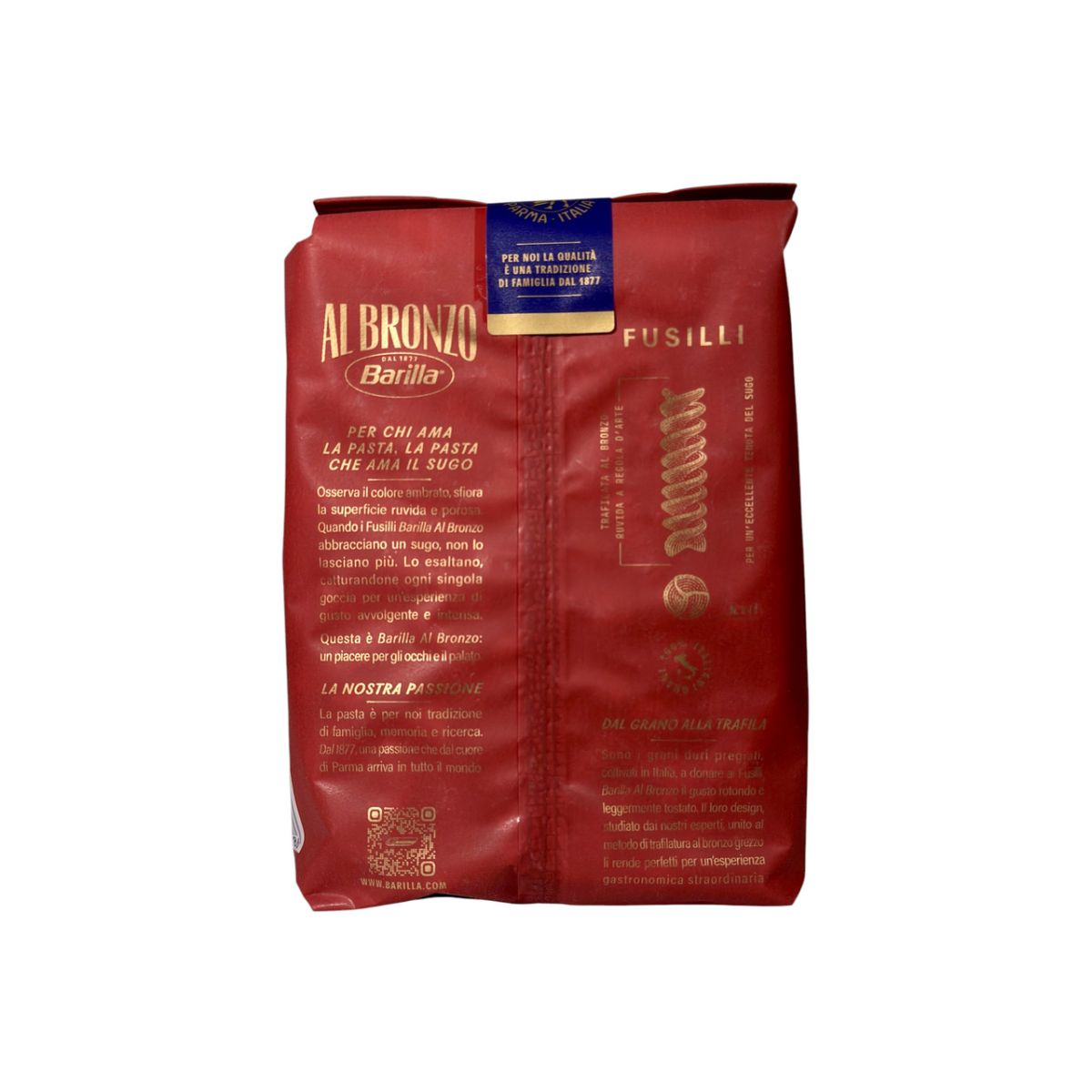 Barilla Al Bronzo Fusilli — це паста преміум-класу з 100% італійської твердої пшениці, створена за традиційною технологією «trafila al bronzo», що надає їй шорстку поверхню для кращого утримання соусу.