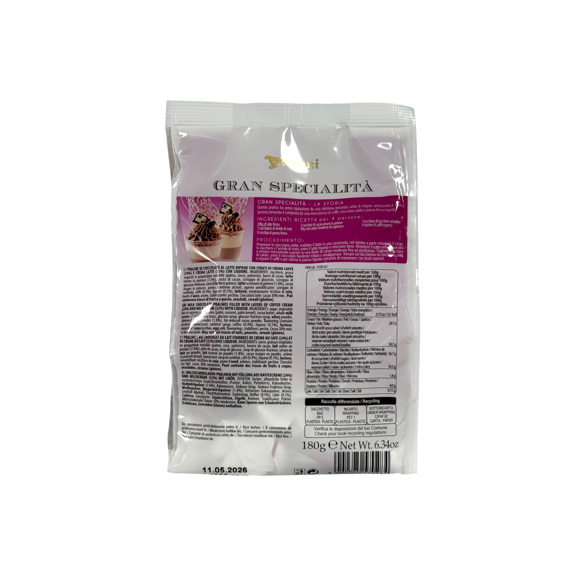 Цукерки Vergani праліне з кавовим кремом Gran Specialita, 180 г