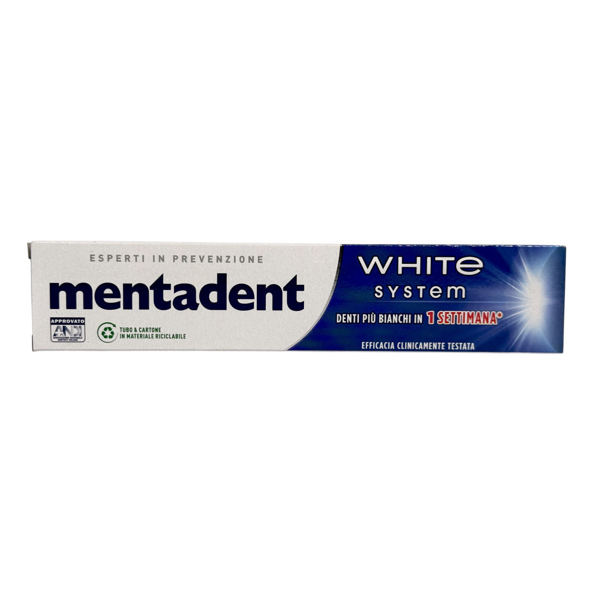 Зубна паста Mentadent White System — це ефективне рішення для природного відбілювання зубів без пошкодження емалі. Вже через 1 тиждень регулярного використання зуби стають помітно білішими.