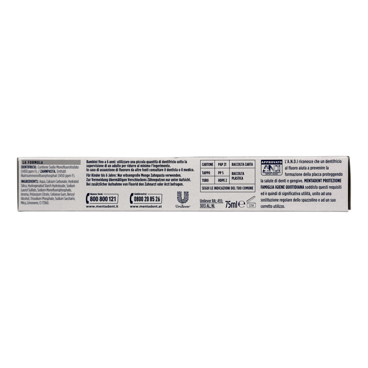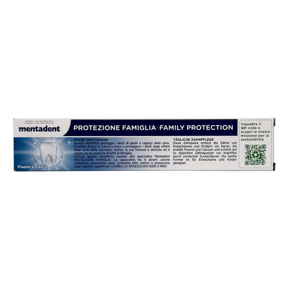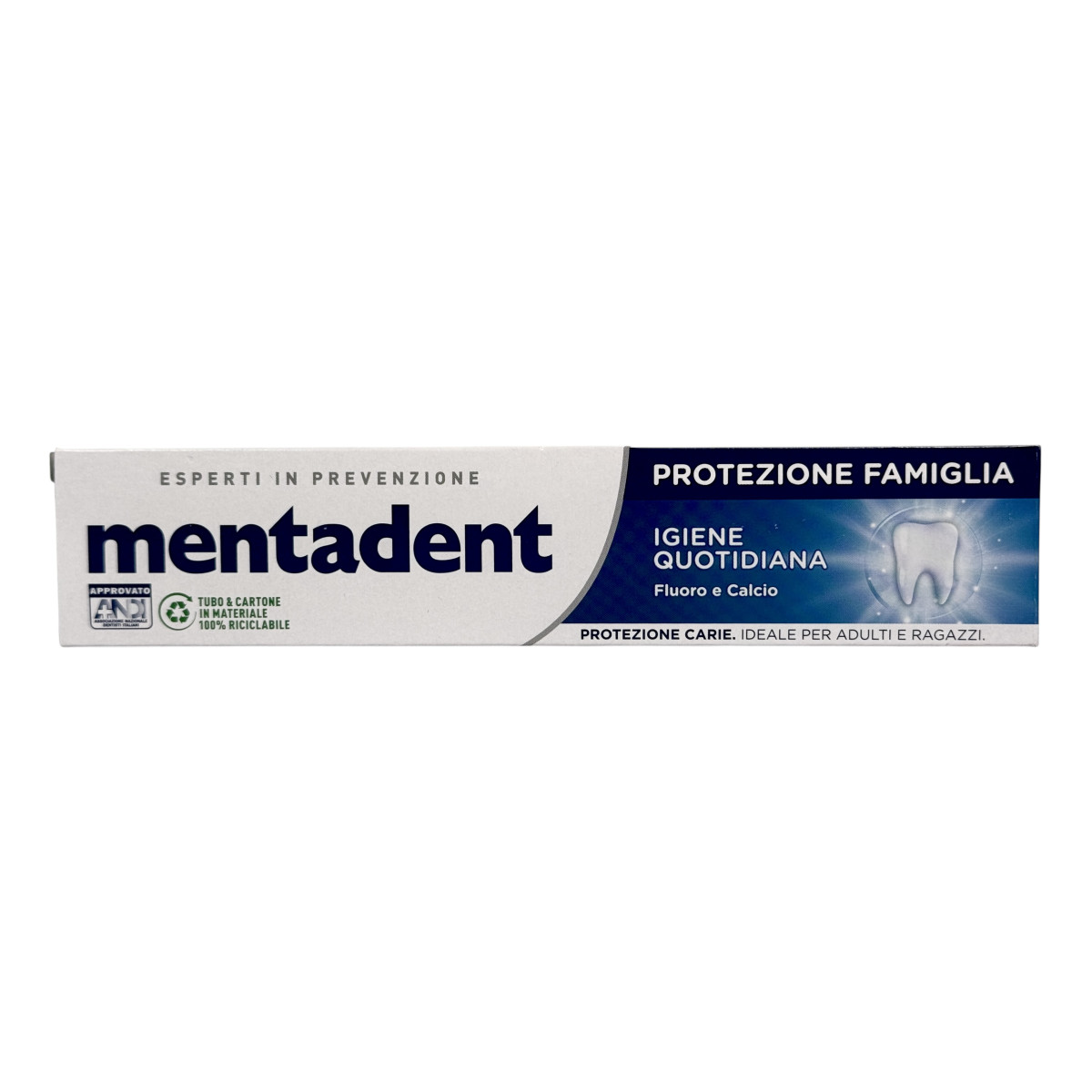 Зубна паста Mentadent Protezione Famiglia — це надійний щоденний догляд для всієї родини, який забезпечує захист від карієсу та зміцнює зубну емаль.