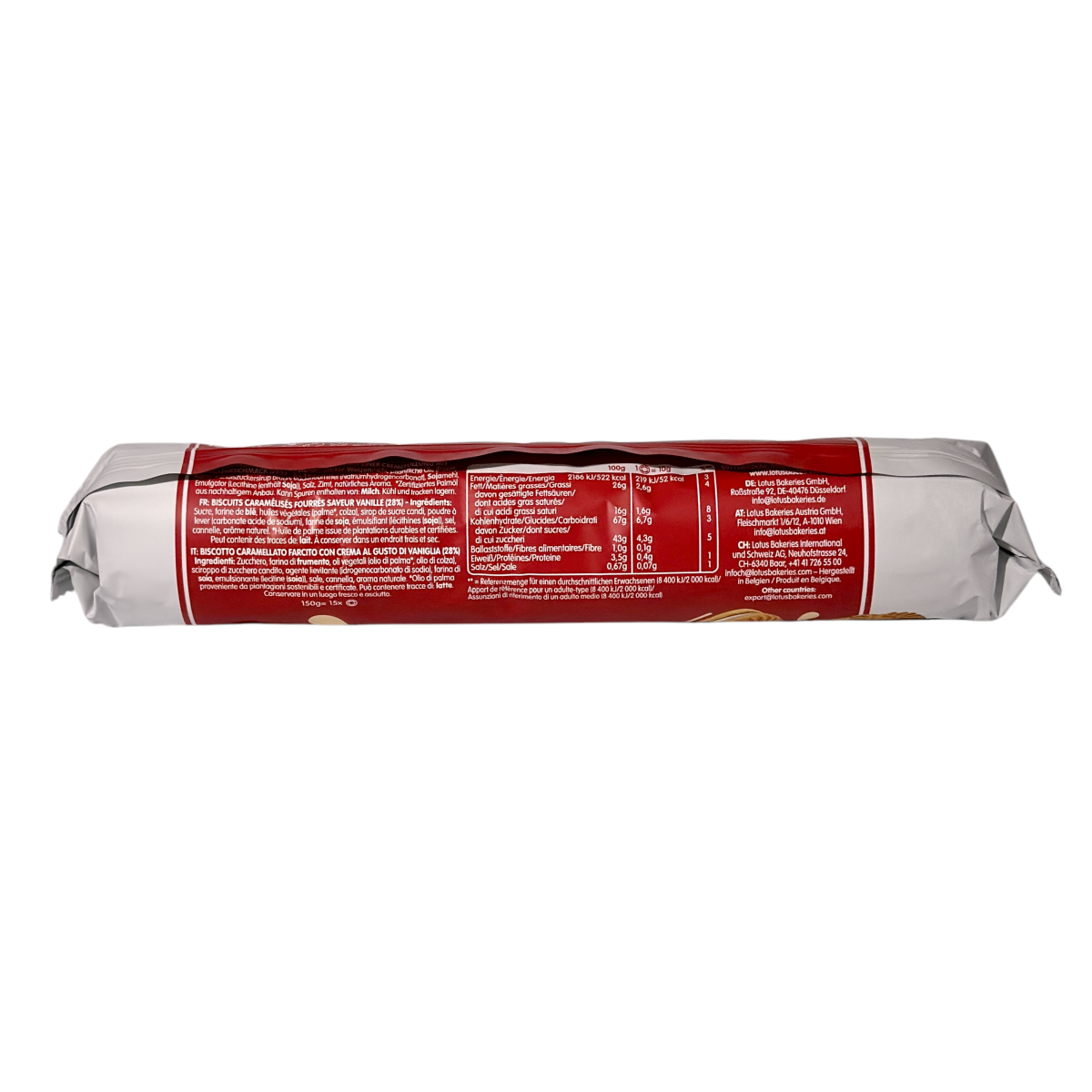 Lotus Biscoff — легендарне печиво з Бельгії, яке завоювало популярність у всьому світі. Воно має хрустку карамельну текстуру та унікальний смак, який ідеально поєднується з кавою чи чаєм. У цій версії печиво збагачене ніжною ванільною кремовою начинкою, створюючи гармонійний десерт для будь-якого моменту.