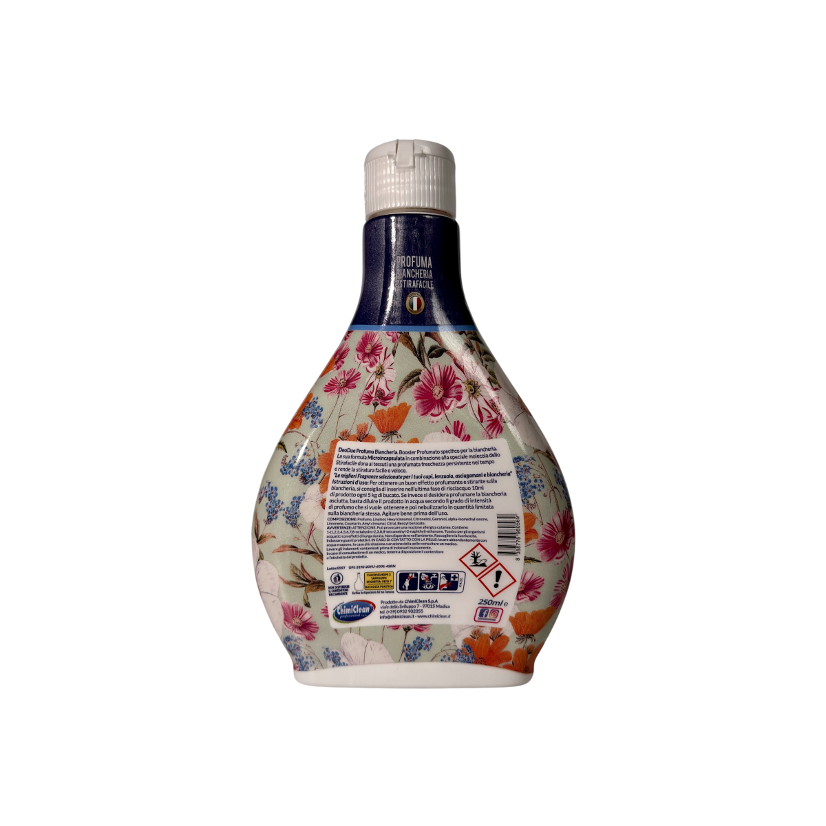 Deo Due Fiori di Primavera — це ароматичний бустер для білизни, створений італійською компанією ChimiClean S.p.A. Формула з мікрокапсулами активує запах при кожному русі тканини, надаючи речам ніжний весняний аромат. Засіб підходить для будь-яких типів тканин і може використовуватись як під час прання, так і для ручного догляду за білизною. Не замінює кондиціонер, а підсилює його ефект, додаючи неперевершену свіжість.