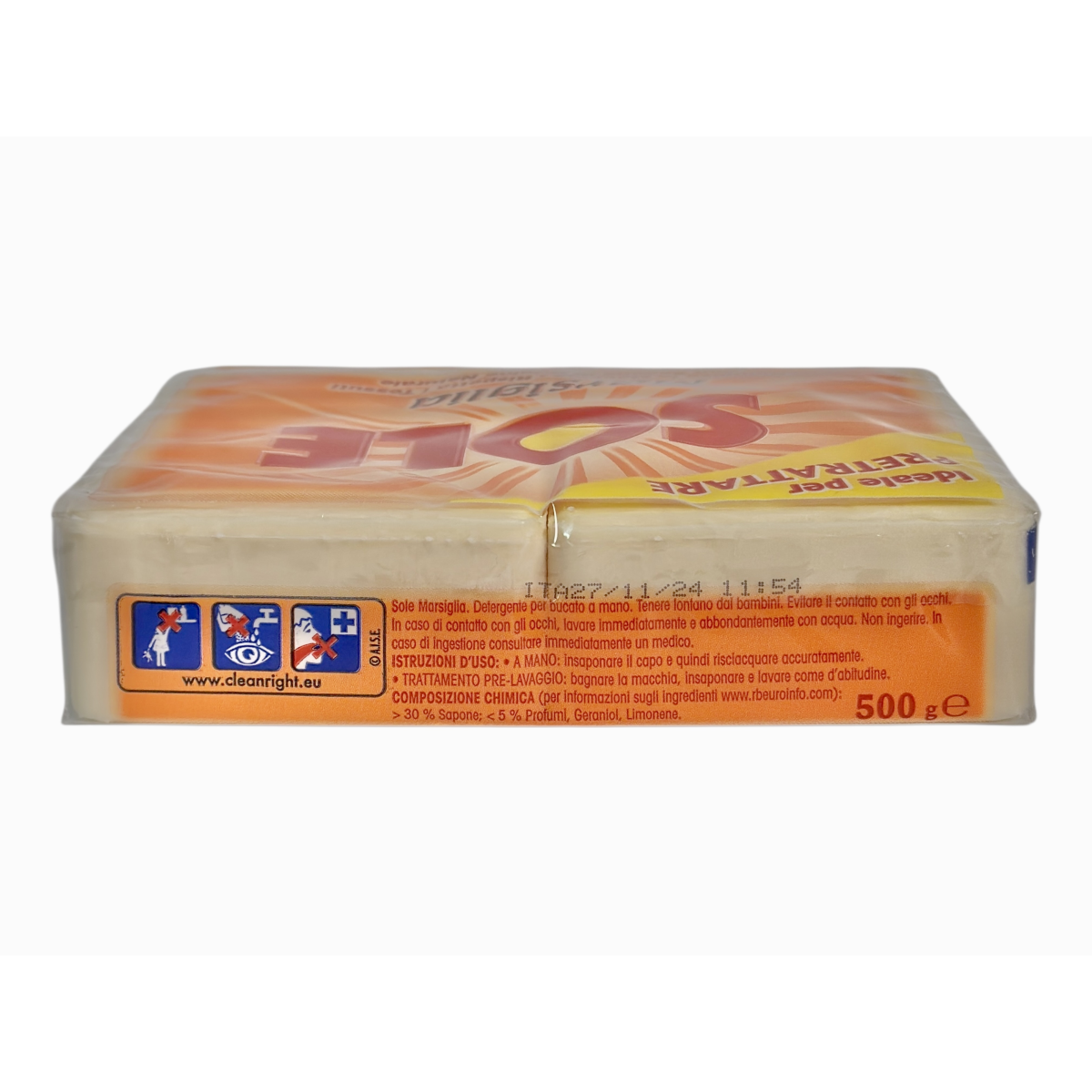 Виготовлене на основі натурального марсельського мила, воно чудово підходить для попередньої обробки плям і делікатного прання. Мило не містить агресивних компонентів, тому підходить навіть для дитячих речей. Ефективно розчиняє жир, піт, плями від їжі чи косметики. Завдяки класичній формулі з приємним нейтральним ароматом, Sole Marsiglia — це надійний вибір для чистоти вашого одягу.