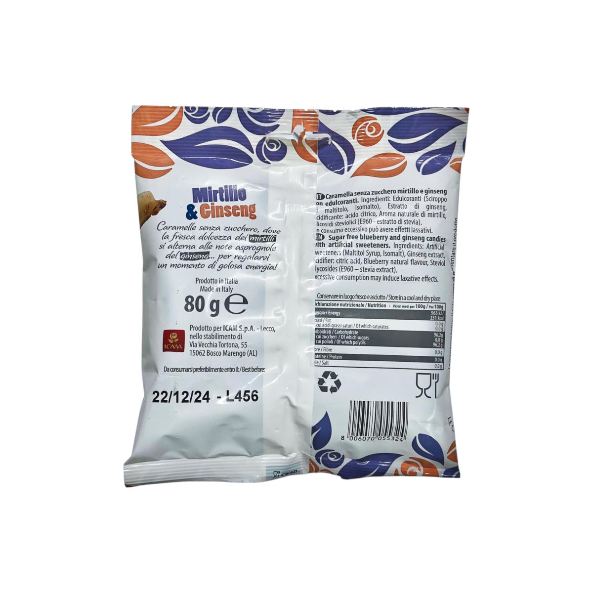Льодяники ICAM без цукру чорниця та женьшень mirtillo & ginseng senza zucchero, 80 г