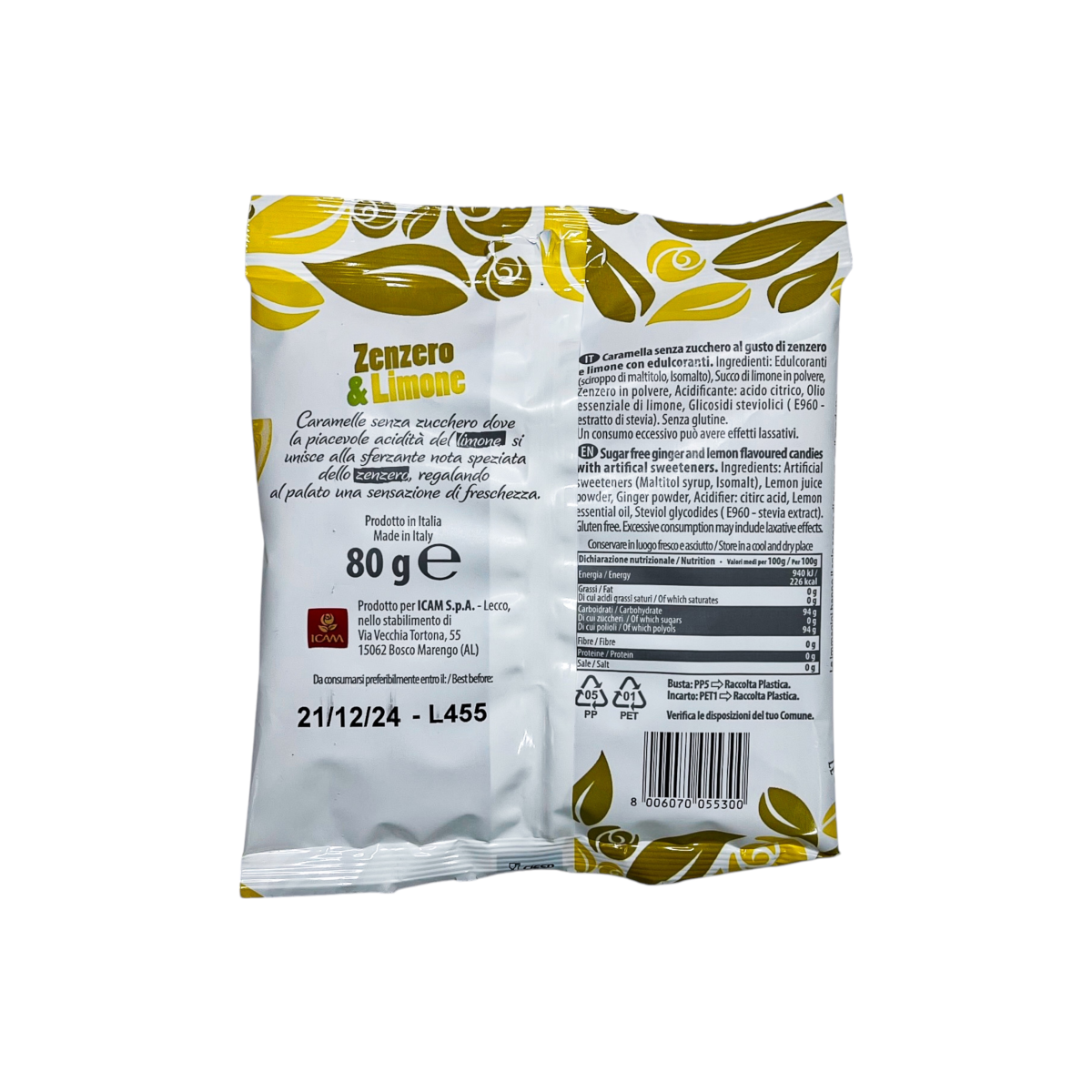 Льодяники ICAM без цукру лимон та імбир zenzero & limone senza zucchero, 80 г