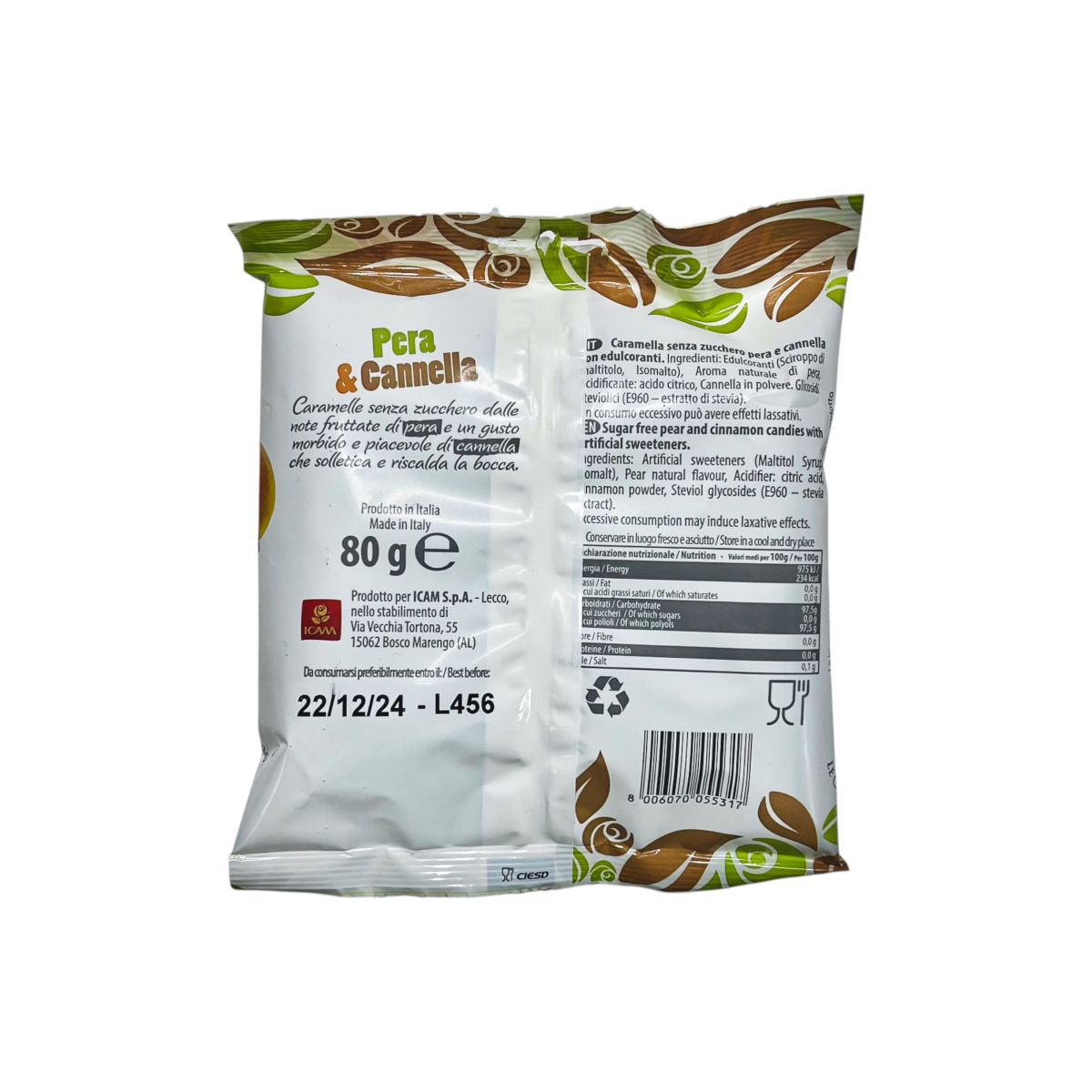 Льодяники ICAM без цукру груша та кориця pera & cannella senza zucchero, 80 г