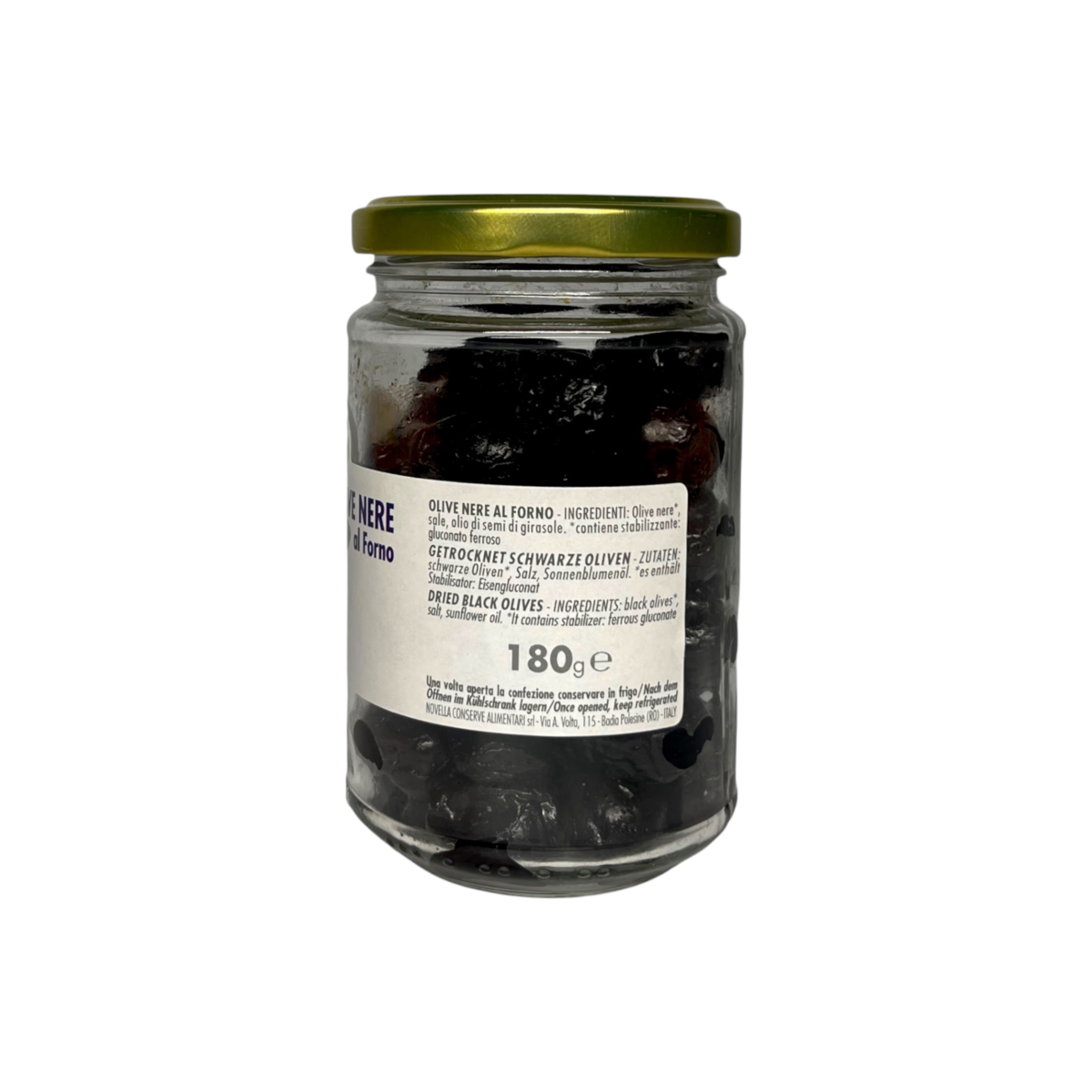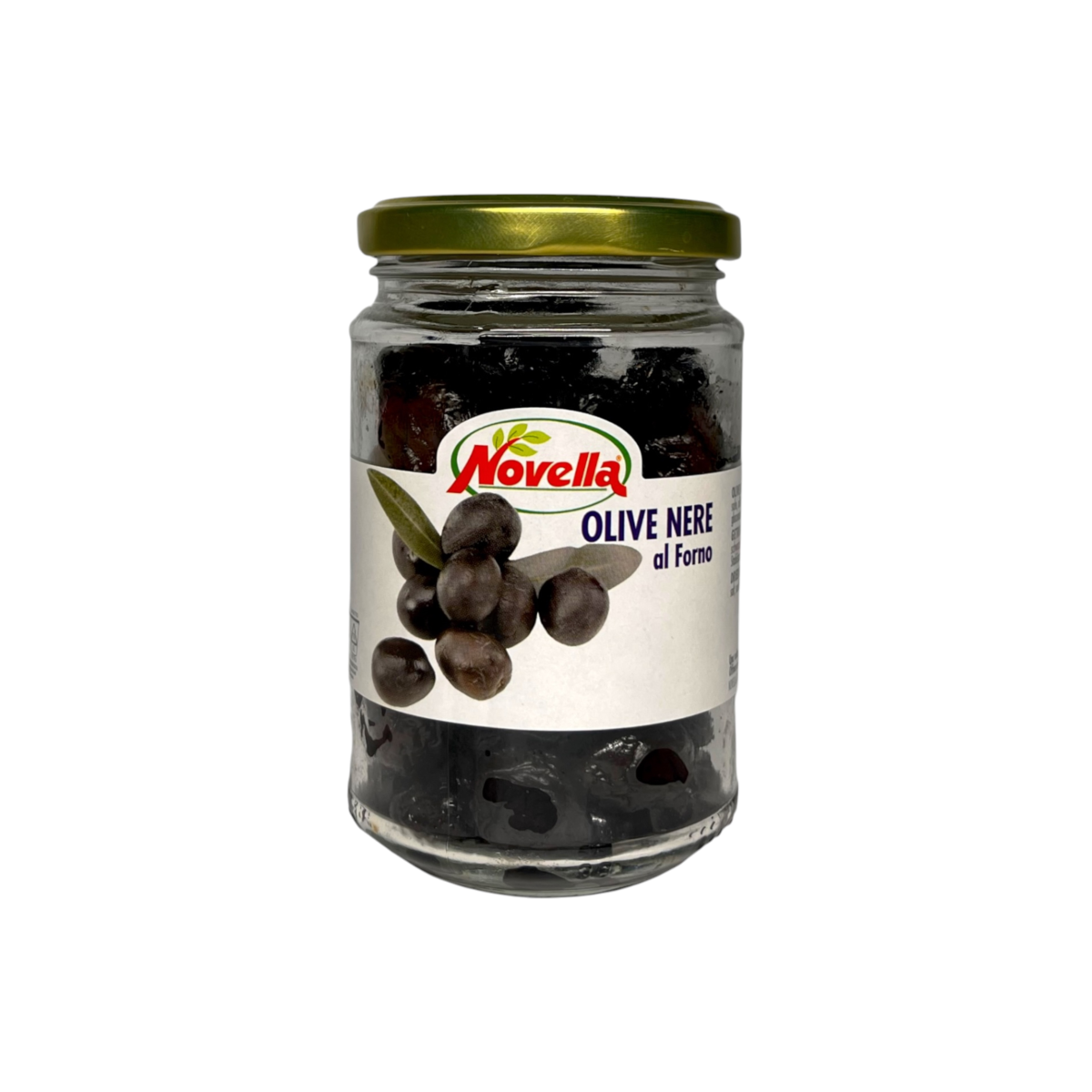 Оливки Novella чорні запечені без води olive nere al forno, 180 г