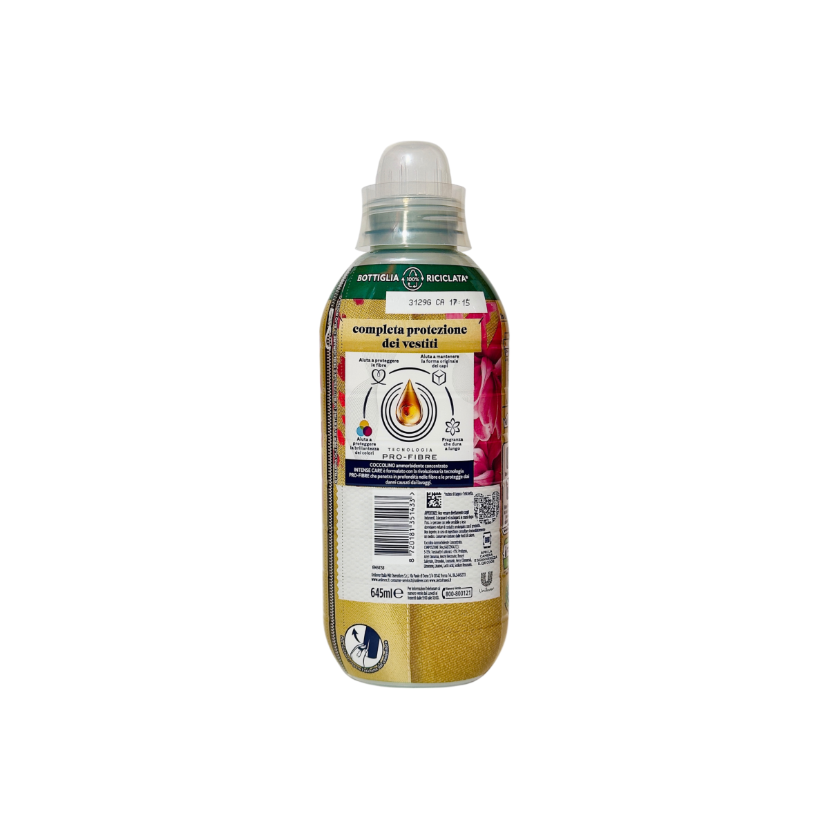 Coccolino Intense Care — це інтенсивний захист волокон тканини з розкішним ароматом сандала і жимолості. Завдяки інноваційній технології Pro-Fibre цей кондиціонер зберігає форму одягу, зміцнює волокна і захищає речі від зносу після кожного прання. Формула не тільки дарує м’якість, а й залишає приємний, стійкий аромат. Бутилка виготовлена зі 100% переробленого пластику — екологічний вибір!