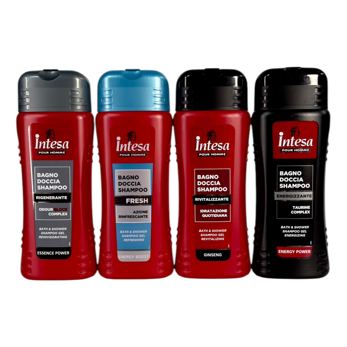 Відчуйте енергійне очищення та тонізуючий ефект з Intesa Pour Homme. Формула збагачена екстрактом алое та Mineral Complex, що дарує свіжість, живить шкіру та надає волоссю здорового вигляду. Засіб має приємний аромат і підходить для щоденного використання.
