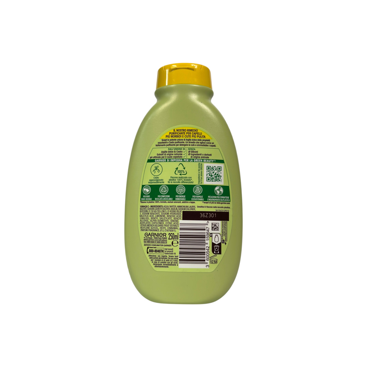 Шампунь Garnier біла глина і кедр для жирного волосся argilla dolce e cedro, 250 мл