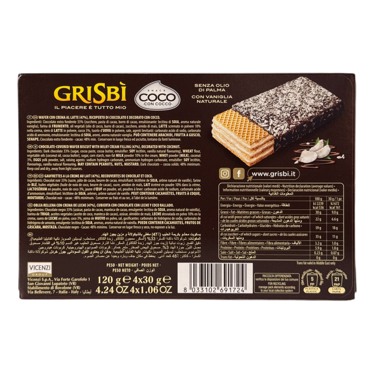 Вафлі Grisbi в шоколаді з кокосовим кремом coco, 4x30 г