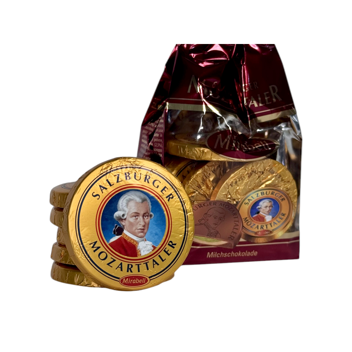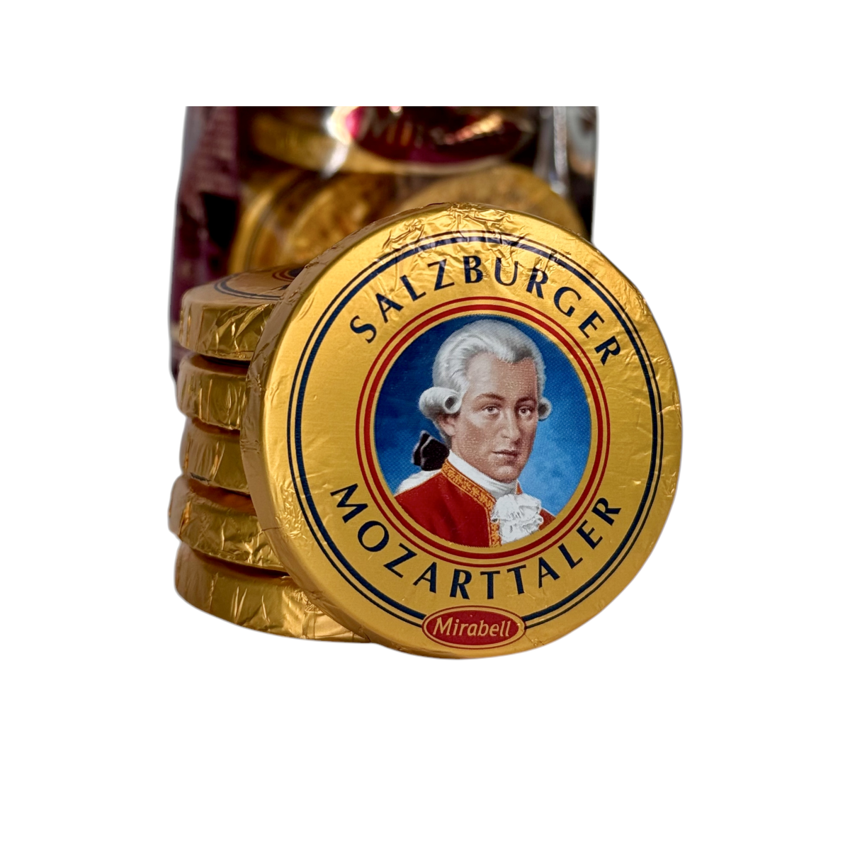 Відчуйте справжній смак Австрії з цукерками Mirabell Mozarttaler, створеними за класичним рецептом у самому серці Зальцбурга. Поєднання ароматного марципану, ніжного праліне та оксамитового молочного шоколаду робить ці цукерки ідеальним подарунком і солодким символом європейської кондитерської майстерності. Виробляються на оригінальних фабриках Mirabell (Mondelēz International, Австрія) із найкращих інгредієнтів і є справжнім гастрономічним сувеніром із країни Моцарта.