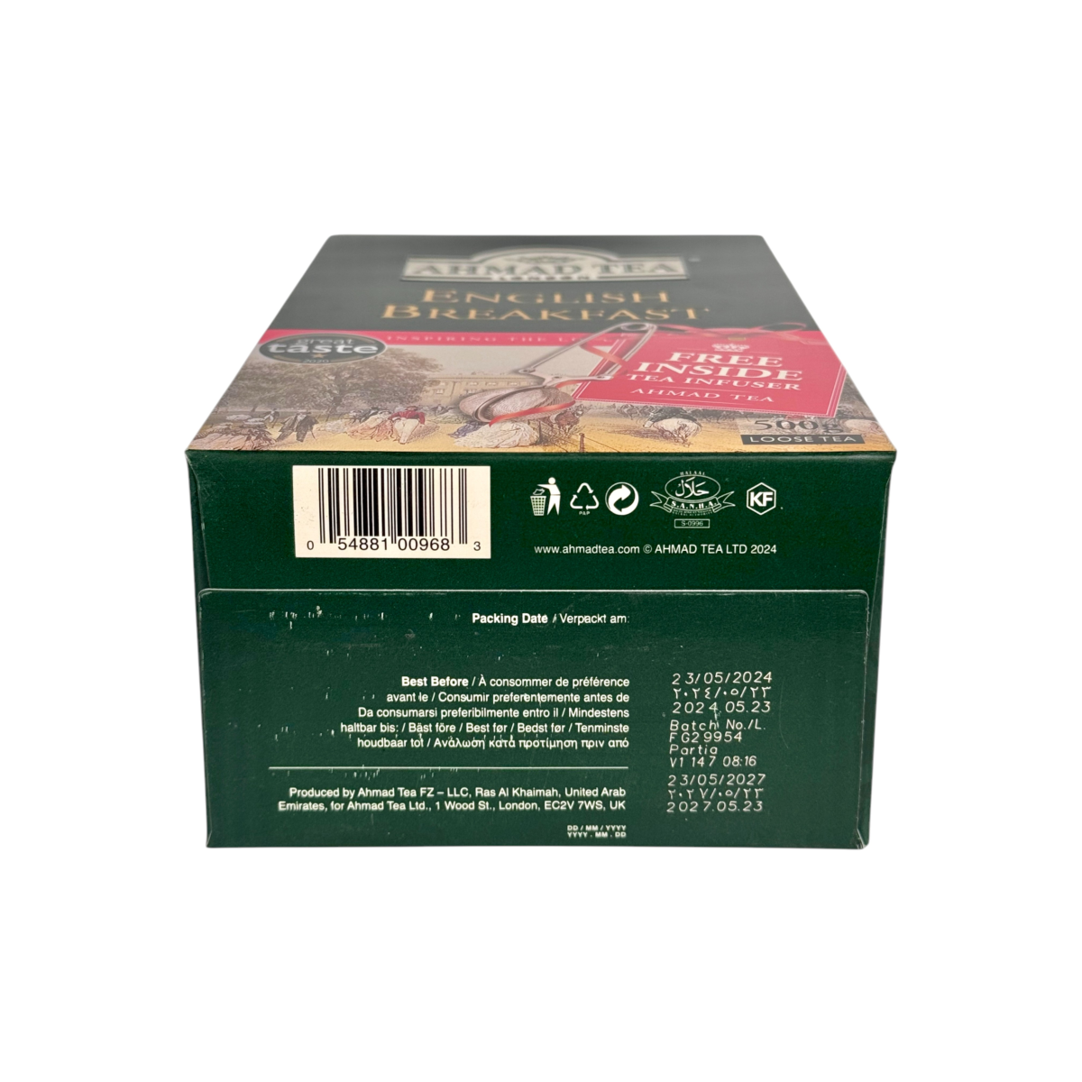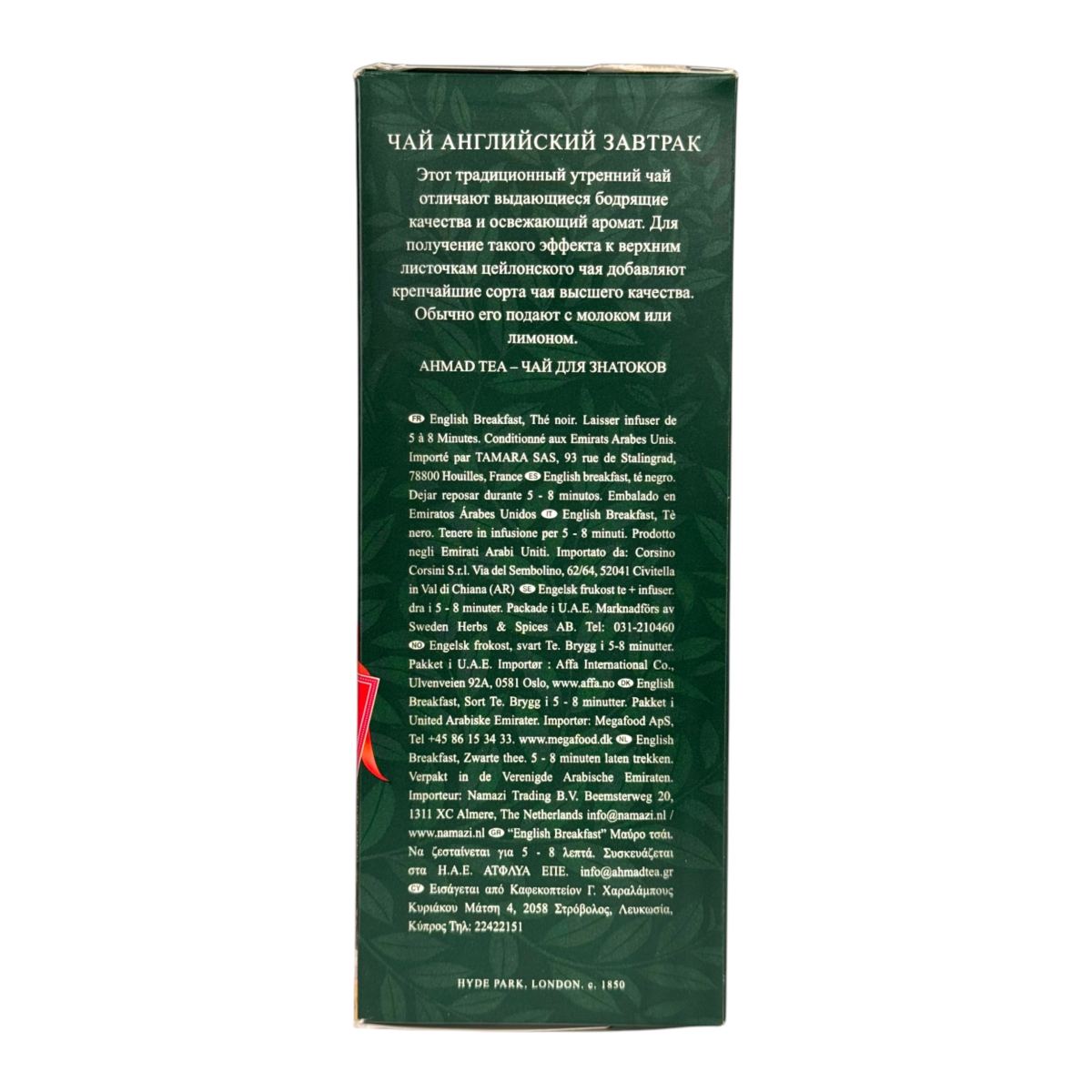 Ahmad Tea English Breakfast — це купаж добірних сортів чорного чаю з Цейлону, Індії та Кенії. Напій має глибокий, насичений смак із легкою терпкістю та м’якими нотами солоду. Завдяки збалансованому складу чай чудово смакує як самостійно, так і з молоком чи лимоном. У комплекті — зручне металеве ситечко для заварювання.