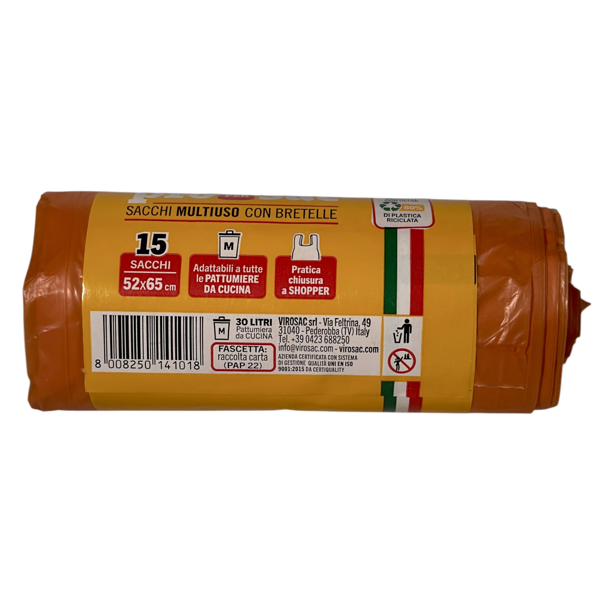 Пакети для сміття ProPerSac з ароматом апельсина — це італійська якість, яка поєднує зручність, надійність і приємний аромат свіжих цитрусів. Вони ідеально підходять для кухонних відер до 30 л і забезпечують максимальну герметичність завдяки формі з ручками типу “майка”. Пакети виготовлені з 80% переробленого пластику, що робить їх не лише практичними, а й екологічними. А завдяки прямим постачанням — ви отримуєте 100% оригінал із внутрішнього ринку Італії, без переплат і сумнівної якості.