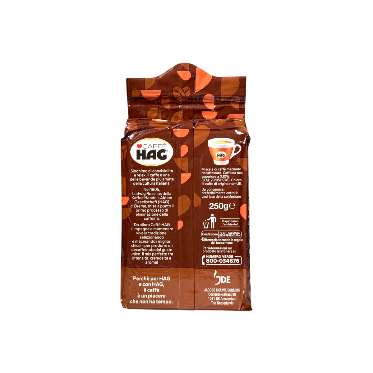 Caffè HAG Classico — це знаменита італійська кава без кофеїну, яку виготовляють за унікальною технологією, що зберігає природний аромат і смак справжнього еспресо. Бренд HAG створений ще у 1905 році в Бремені (Німеччина), і став символом якісної безкофеїнової кави в Італії.
