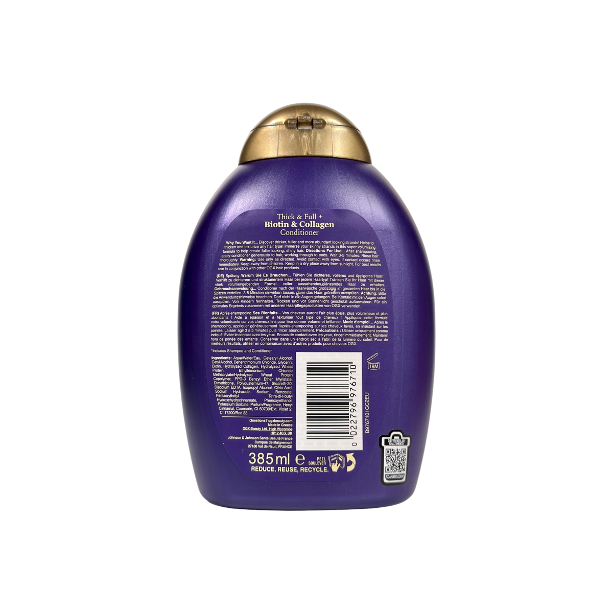 Надайте волоссю густоти, сили та блиску з кондиціонером OGX Biotin & Collagen Thick & Full.