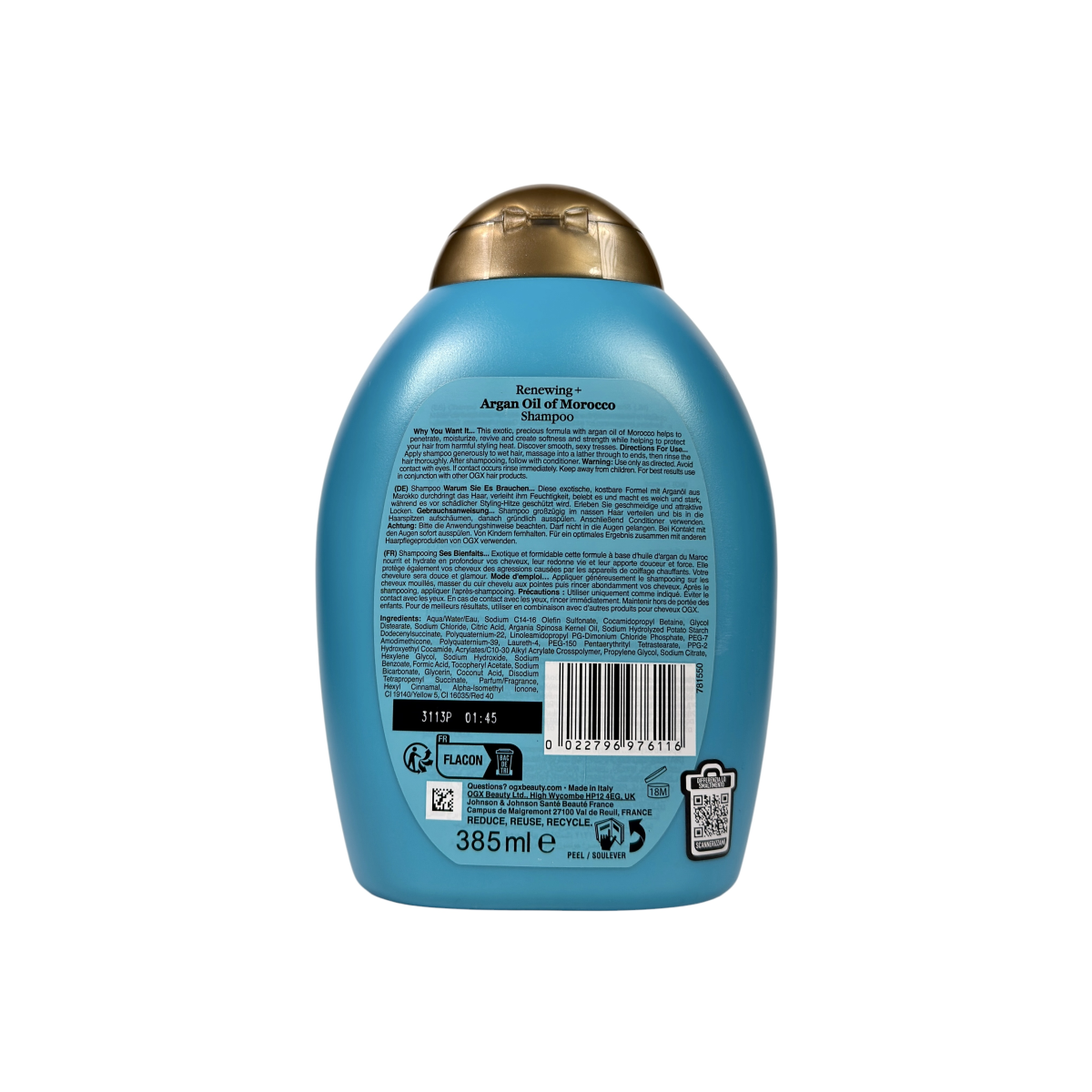• Склад (основні компоненти): вода, арганова олія (Argania Spinosa Kernel Oil), гліцерин, кокамідопропіл бетаїн, гідролізований кератин, диметикон, натрію хлорид, парфум, цитрична кислота, феноксиетанол, PEG-120 Methyl Glucose Dioleate