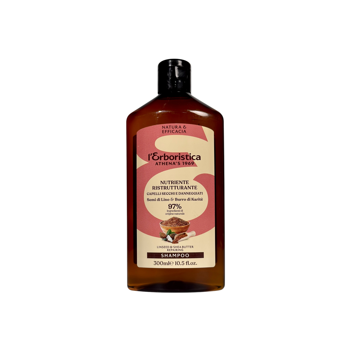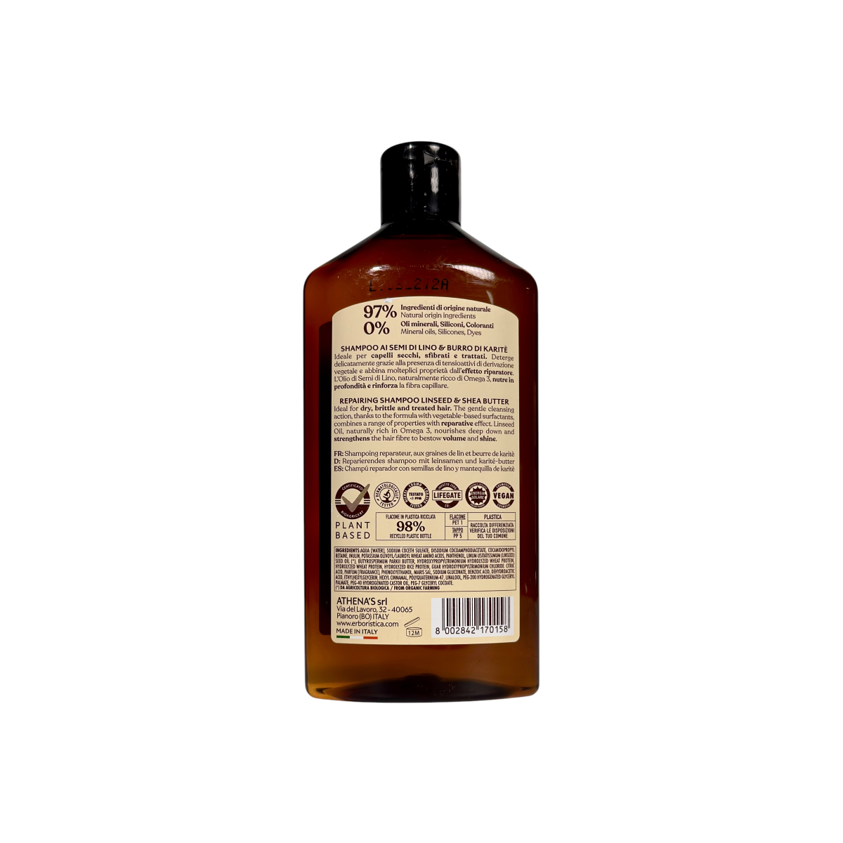 Шампунь L’Erboristica відновлюючий з олією льону та каріте ai semi di lino e burro di karité, без маркування об’єму