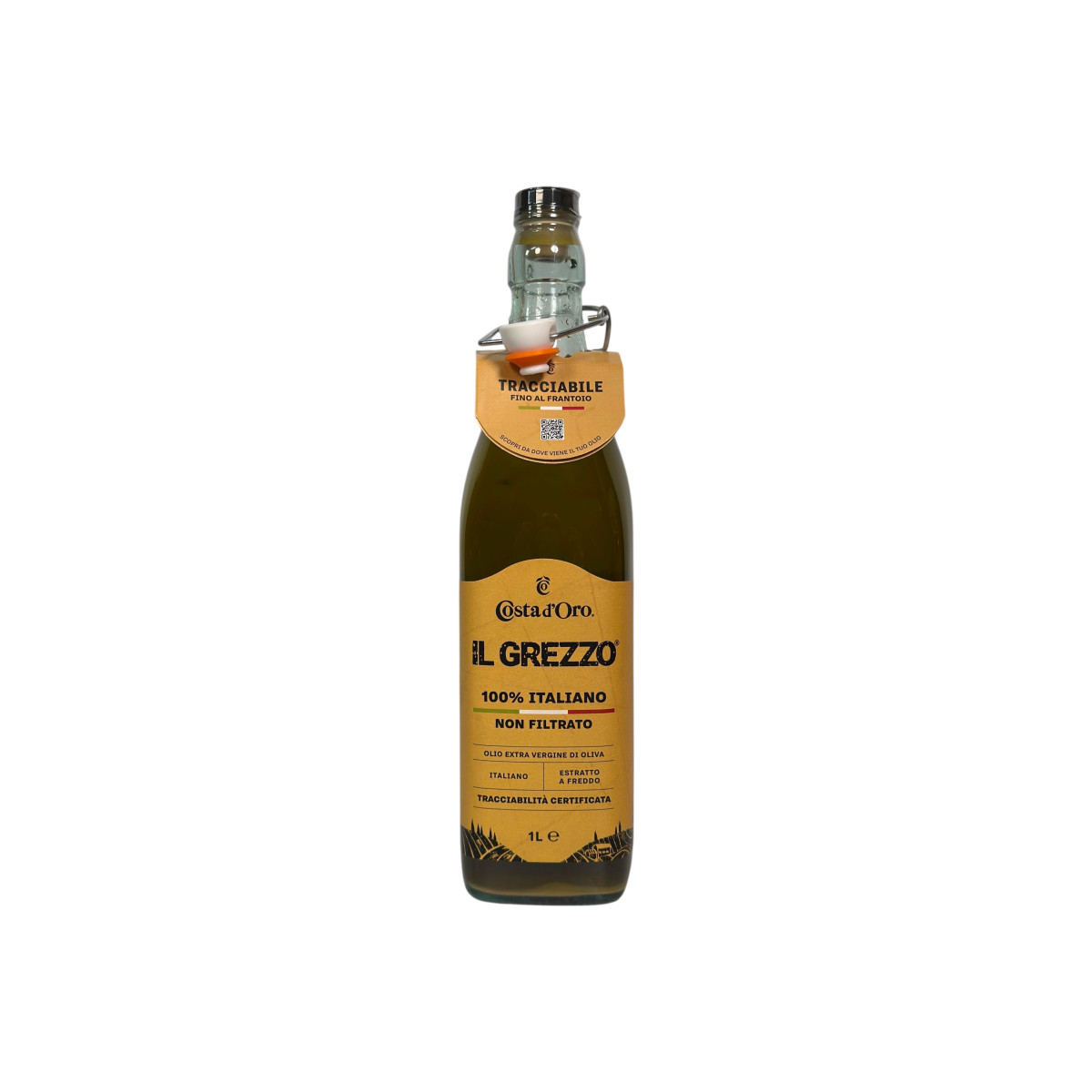 Нефільтрована оливкова олія Costa d’Oro Il Grezzo — справжня перлина італійського виробництва. Це 100% італійська Extra Virgin олія холодного віджиму, виготовлена з ретельно відібраних олив із серця Італії. Її нефільтрована структура зберігає природну м’якість, аромат і всі корисні речовини свіжого соку оливи.