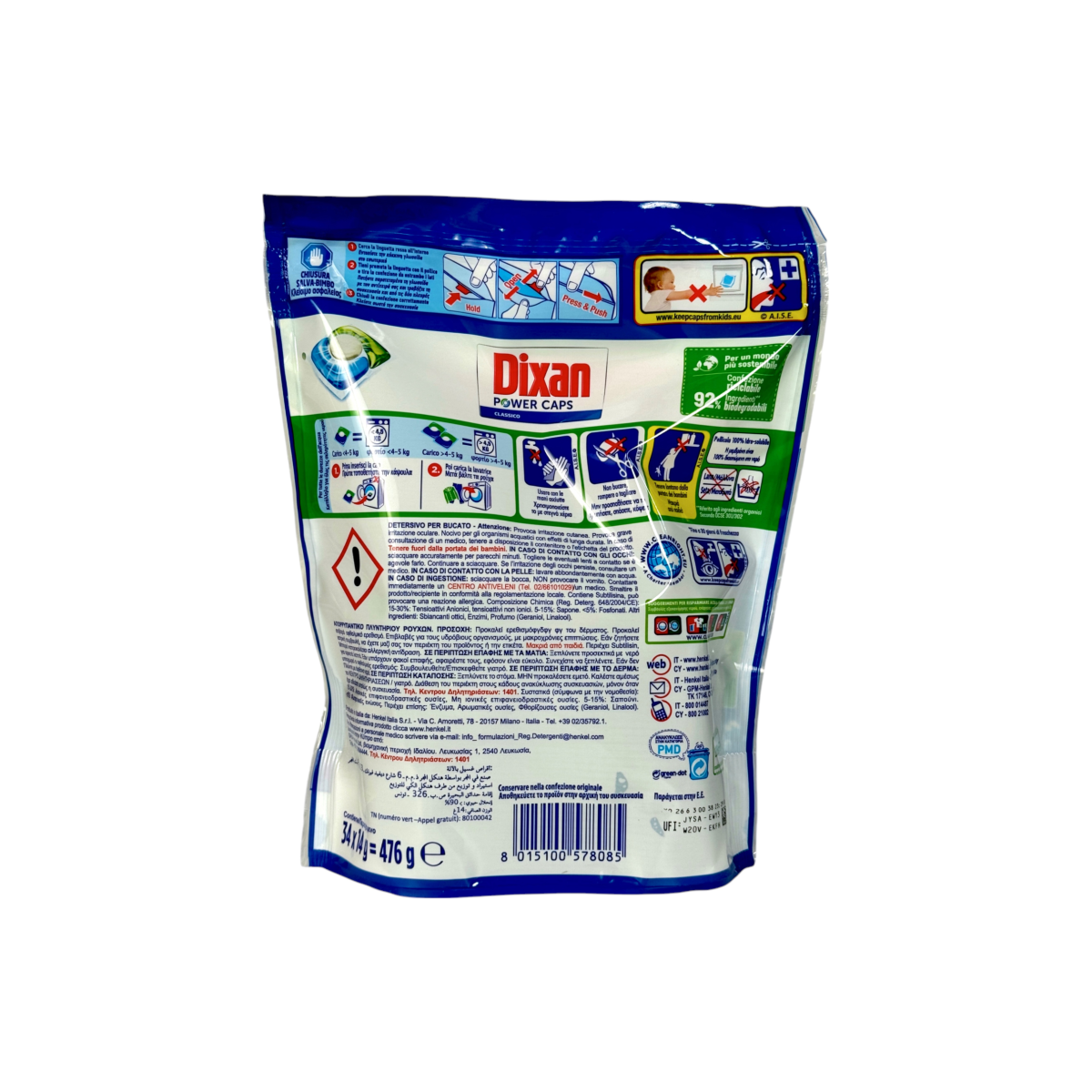 Dixan Power Caps Classico — це трикамерні капсули нового покоління, які поєднують у собі глибоке очищення, догляд за тканиною та тривалу свіжість. Вони ефективно видаляють навіть складні плями, зберігають яскравість кольорів та залишають приємний аромат до 30 днів.